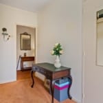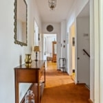 We komen binnen in de hal met een lange gang die toegang biedt tot alle leefruimtes van deze woonlaag. Aan deze zijde vinden we gelijk twee slaapkamers waarvan de kleinste ook uitstekend als inloopkast te gebruiken is. Deze biedt ook toegang tot het balkon.