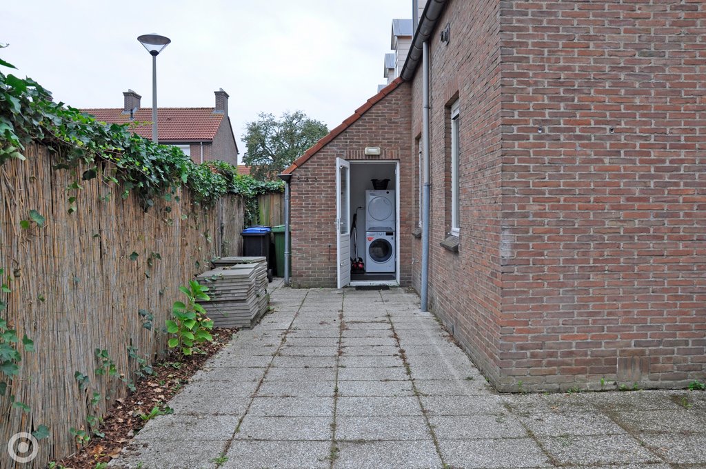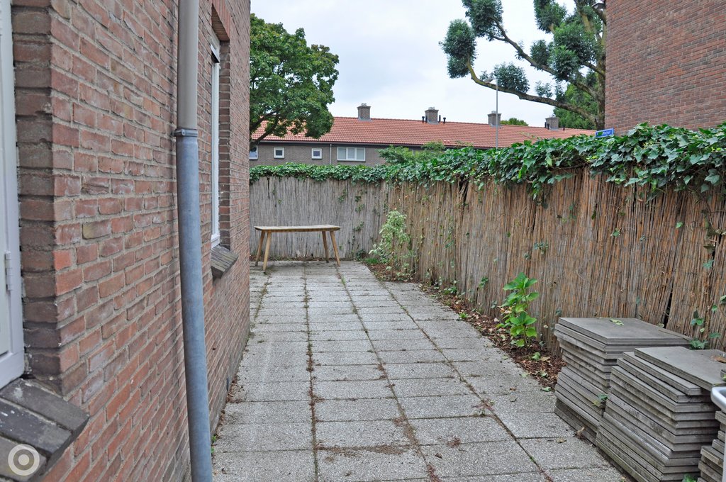 Weer beneden aangekomen loop je via de bijkeuken zo de keurige en diepe bestrate achtertuin in, die op het Noord-Oosten ligt en waar je eind van de dag mooi achter in de tuin nog kunt genieten van veel privacy in de zon. Ook is de tuin bereikbaar via een achterom en achter in bevindt zich nog een vrijstaande houten berging.