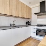 Een moderne keuken, geïnstalleerd in 2017, wacht aan de voorzijde, compleet met een keramieken blad, houtlook bovenkasten en een achterwand van pvc/kunststof. Een plek waar creatieve gerechten tot leven komen. U zult genieten van het gemak van een 4 pits gasfornuis, combi oven, vaatwasser, spoelbak en het welbekende soft close systeem. De grote raampartijen zorgen voor een fijn uitzicht aan de voorzijde.