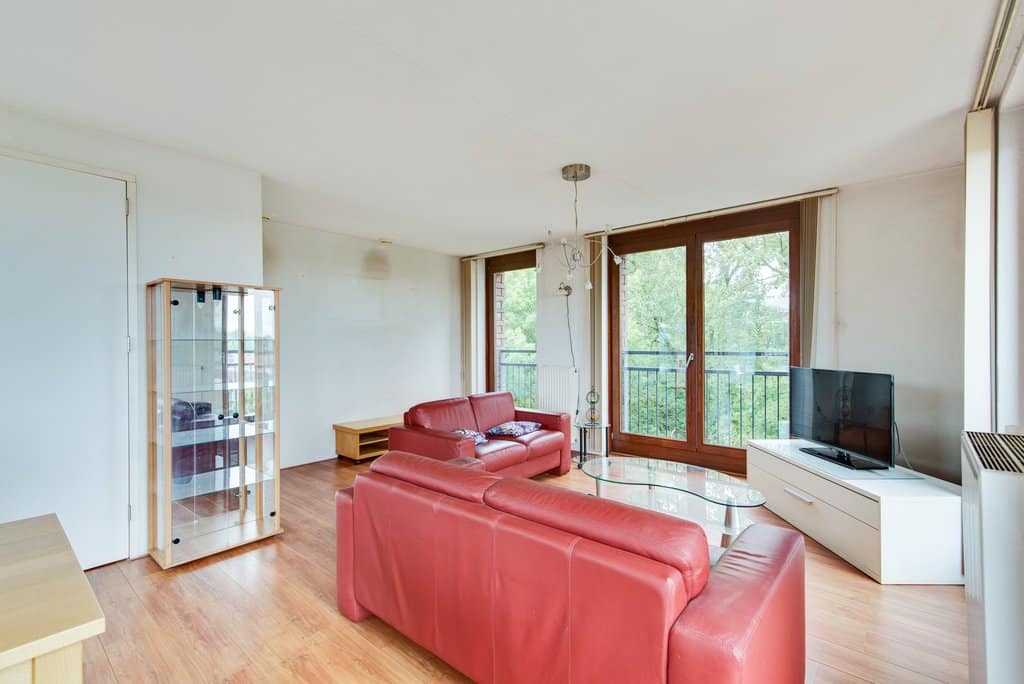 In de woonkamer ervaart u een fantastisch uitzicht die door de grote en vele raampartijen volledig tot zijn recht komt. Verreweg het mooiste plekje van het appartement om te vertoeven en heerlijk te ontspannen.