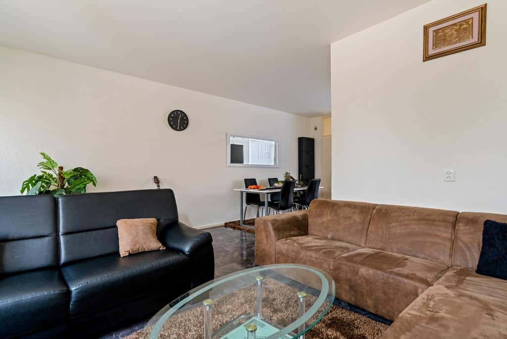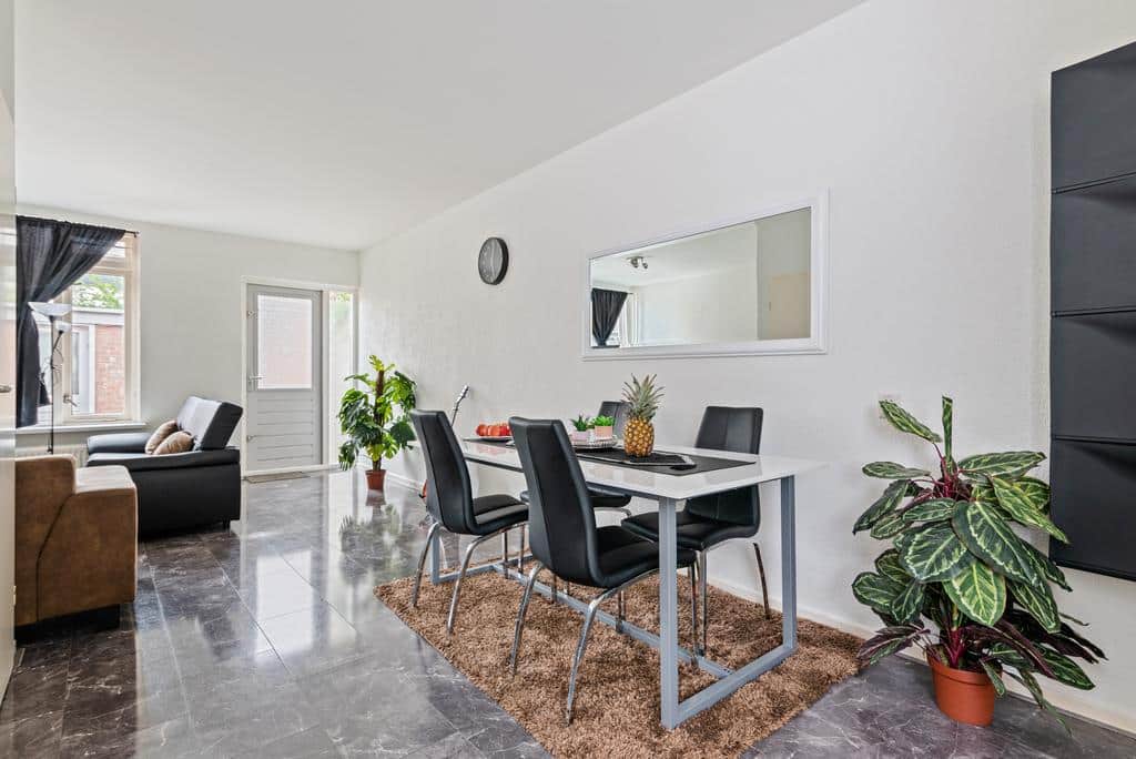 Wanneer we de auto in de straat parkeren valt ons oog direct op de ligging van de woning. De woning is aan het begin van de straat gelegen waardoor je geniet van de rust in deze straat maar ook snel en eenvoudig de binnenstad op kunt zoeken. Via de entree/hal, die ruim genoeg is om een garderobe te realiseren, lopen we het woongedeelte in.