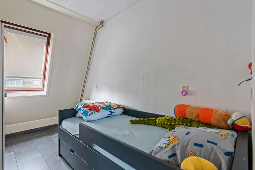 Via een vaste trap is er nog een verdieping bereikbaar. Dit is absoluut van toegevoegde waarde voor deze woning. Ingericht met een voorzolder met bergruimte en toegang tot de vierde (slaap)kamer. Deze kamer is ruim en biedt mogelijkheden als slaapkamer maar ook zeker als werkkamer en/of hobbyruimte. Voorzien van zeil en een groot dakraam.