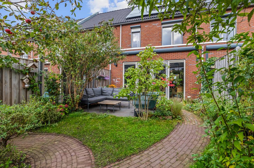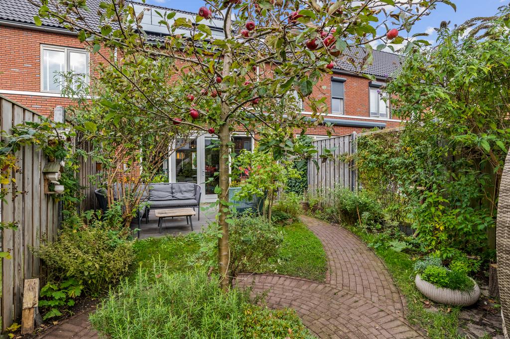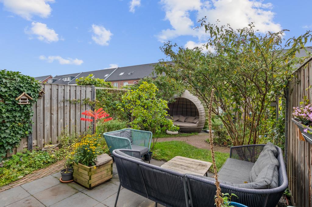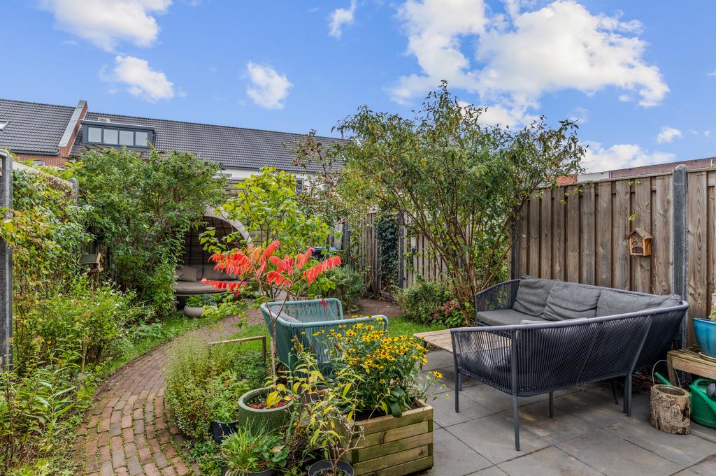 De sfeer van binnen is buiten doorgetrokken. De tuin is deels onderhoudsarm en ingericht met verschillende mogelijkheden voor een terras of loungeset. Deze zonnige. op het zuiden gelegen, tuin bezit zowel zon- als schaduwplekken