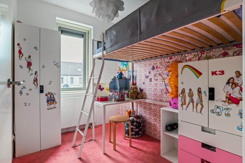 We lopen naar boven en zien dat ook dit gedeelte van de woning is afgewerkt zoals deze woning dat verdient; ruimtelijk en met een sfeervolle uitstraling. Op de verdieping vinden we 3 slaapkamers en een badkamer. Alle kamers zijn momenteel in gebruik als slaapkamers waar voldoende ruimte