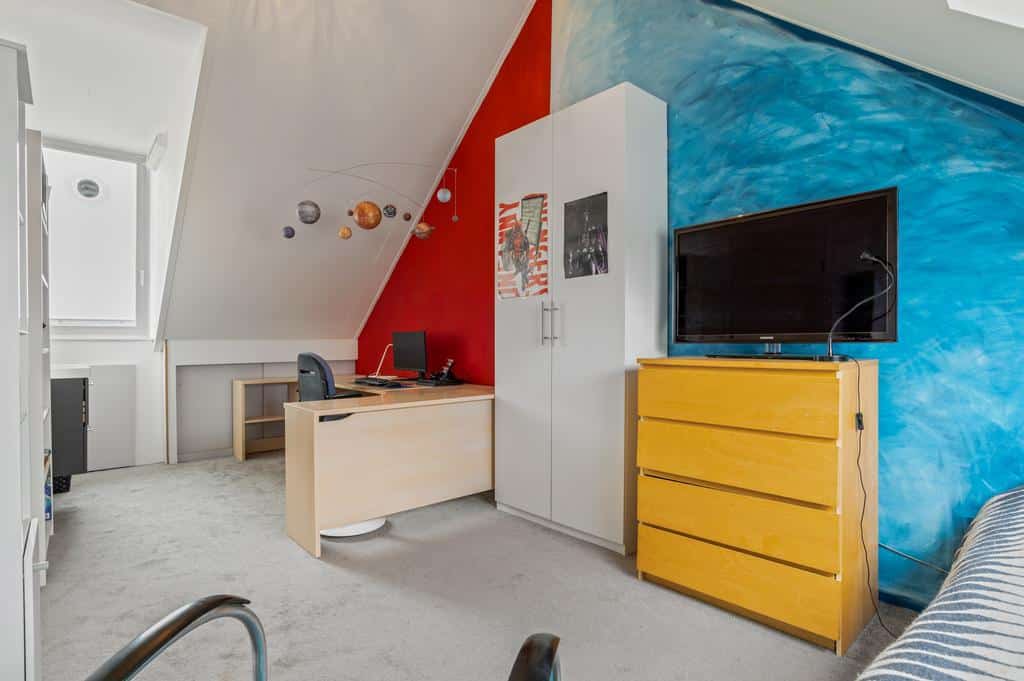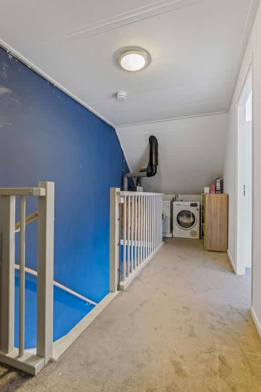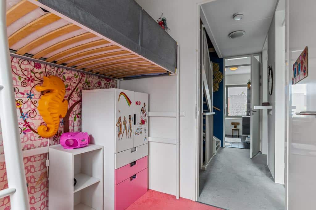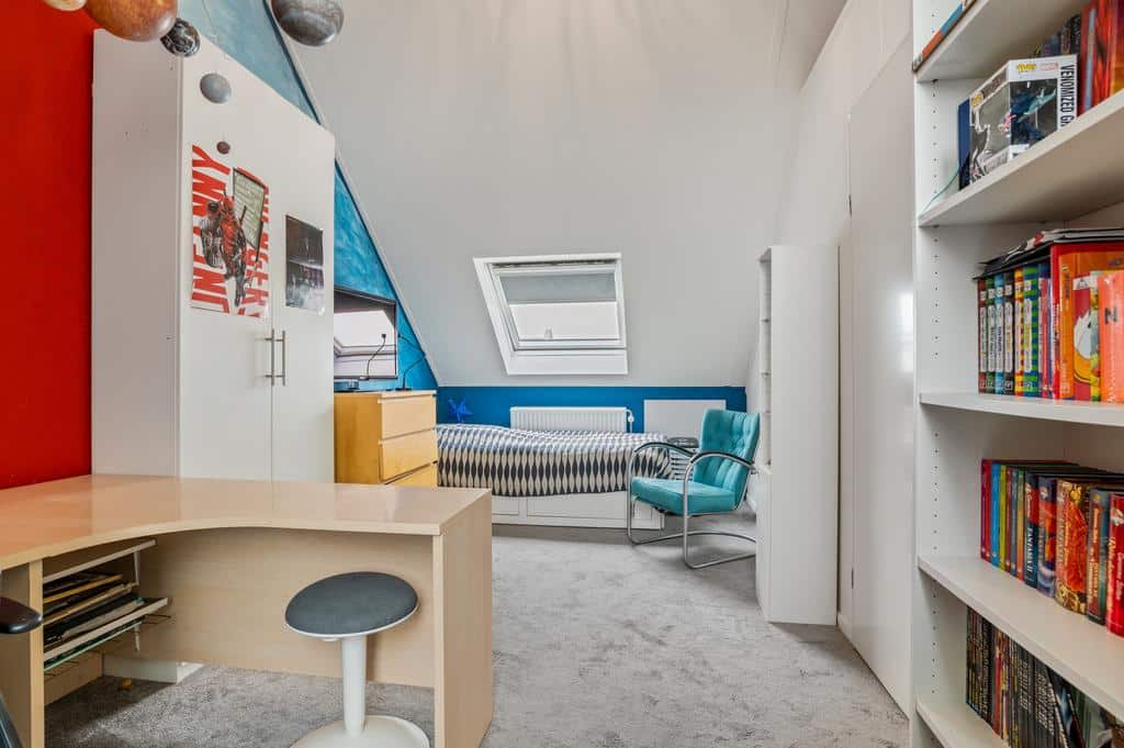 Door de hoogte van deze woning is er nog een volwaardige verdieping te vinden. Deze verdieping is absoluut een meerwaarde voor deze woning. Over de gehele diepte is hier een grote slaapkamer gerealiseerd met voldoende lichtinval middels een dakraam en een speelse dakkapel. Deze kamer is ideaal als 4e slaapkamer maar biedt ook voldoende ruimte voor een kast en zelfs nog een aparte werkplaats. Aan de andere zijde van de deur vinden we de opstelling van wasmachine en droger en de mechanische ventilatie unit. Op de verdieping zijn knieschotten aanwezig voor de nodige bergruimte. Een leuk detail is de entresol die boven de voorzolder is gecreëerd voor meer opslagruimte. Mogelijkheden die wij zien op deze verdieping is het eventueel realiseren van een extra kamer en een kleine bergzolder.