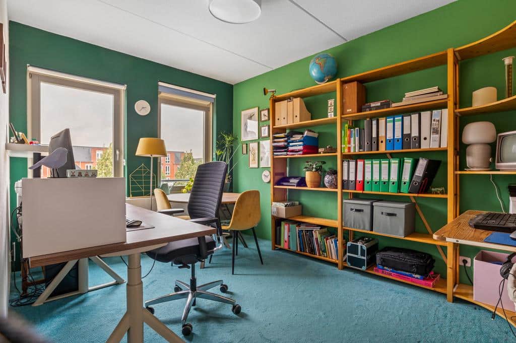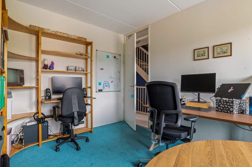 voor wordt geboden. Ook zijn er uitstekende mogelijkheden om de kleinste kamer in te richten als inloopkast of kantoor/werkruimte. De gehele verdieping is afgewerkt met vloerbedekking, behangen wanden en grote raampartijen. Een heerlijk lichte verdieping met een moderne teint. Slaapkamers aan de achterzijde zijn voorzien van rolluiken.