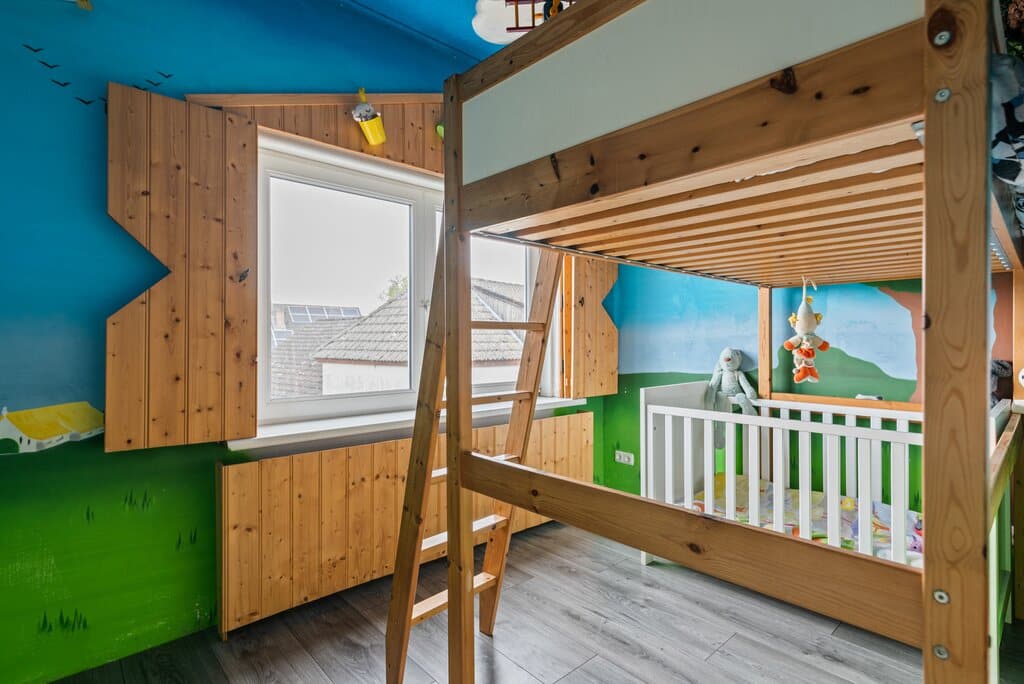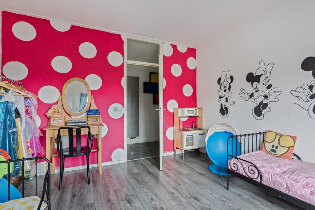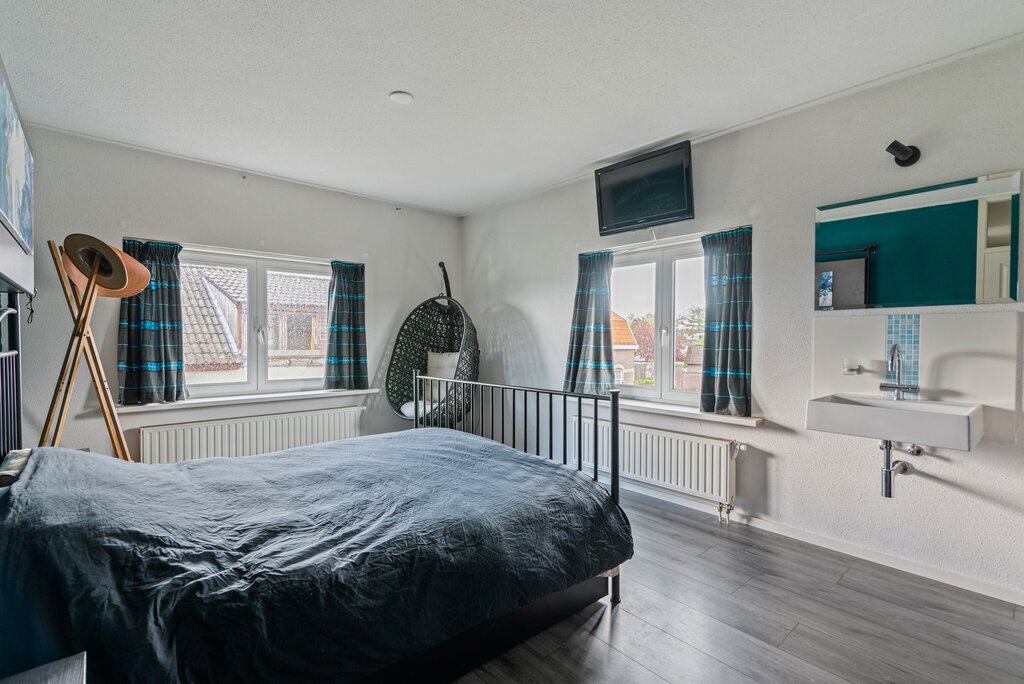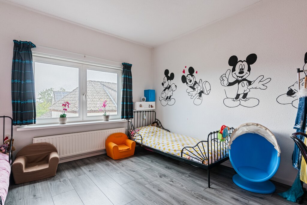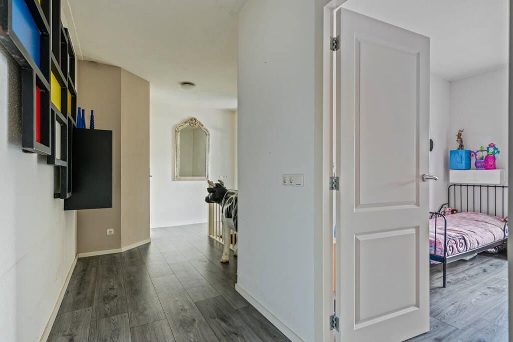 Alle kamers bieden ruimte voor een ruime bed met (kleding)kast. De verdieping is afgewerkt met een strakke grijskleurige laminaatvloer, gespachtelde wanden, gespoten plafonds, paneeldeuren en kunststof kozijnen met HR++ beglazing.