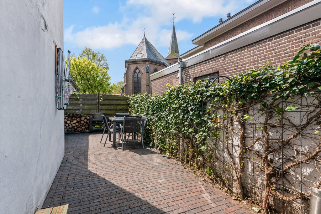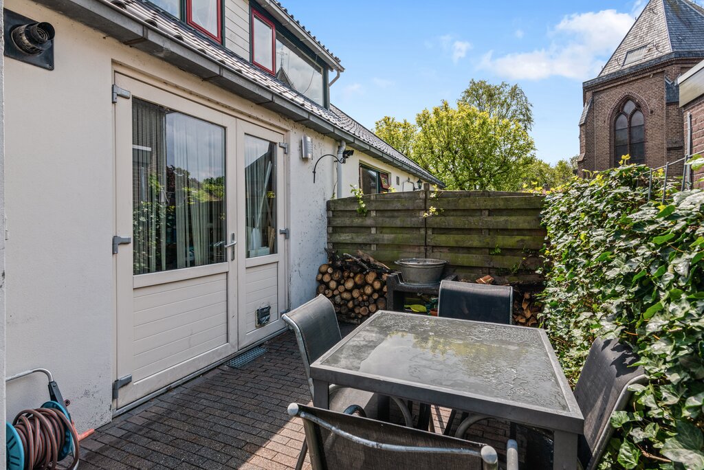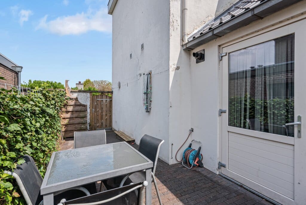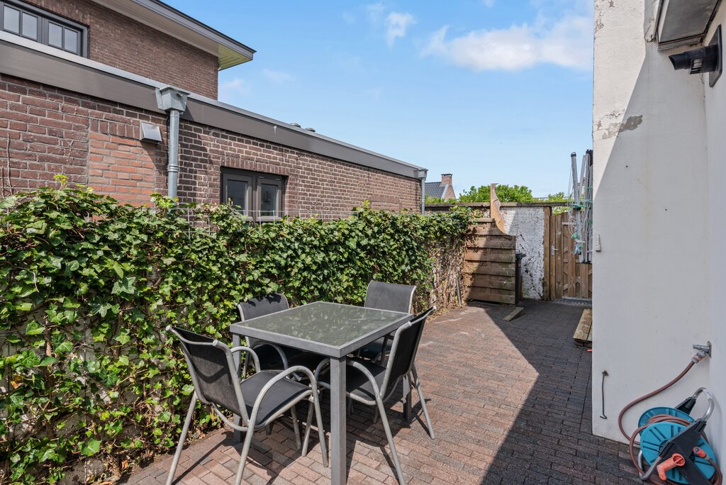 Achterin de woning bevindt zich nog een zeer ruime bergruimte over de gehele breedte van het woonhuis. Een handige plek voor uw opslag maar ook voor de wasmachine, droger en/of vriezeropstelling. Deze ruimte is tevens de plek voor de cv installatie (huurketel Intergas 2017). Daarnaast biedt deze bergruimte toegang tot de zonnige tuin aan de zijkant van de woning. Deze is ook vanaf de straat bereikbaar. Een onderhoudsarm ingerichte tuin met terras op het westen gelegen.