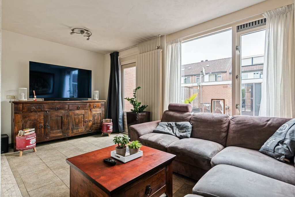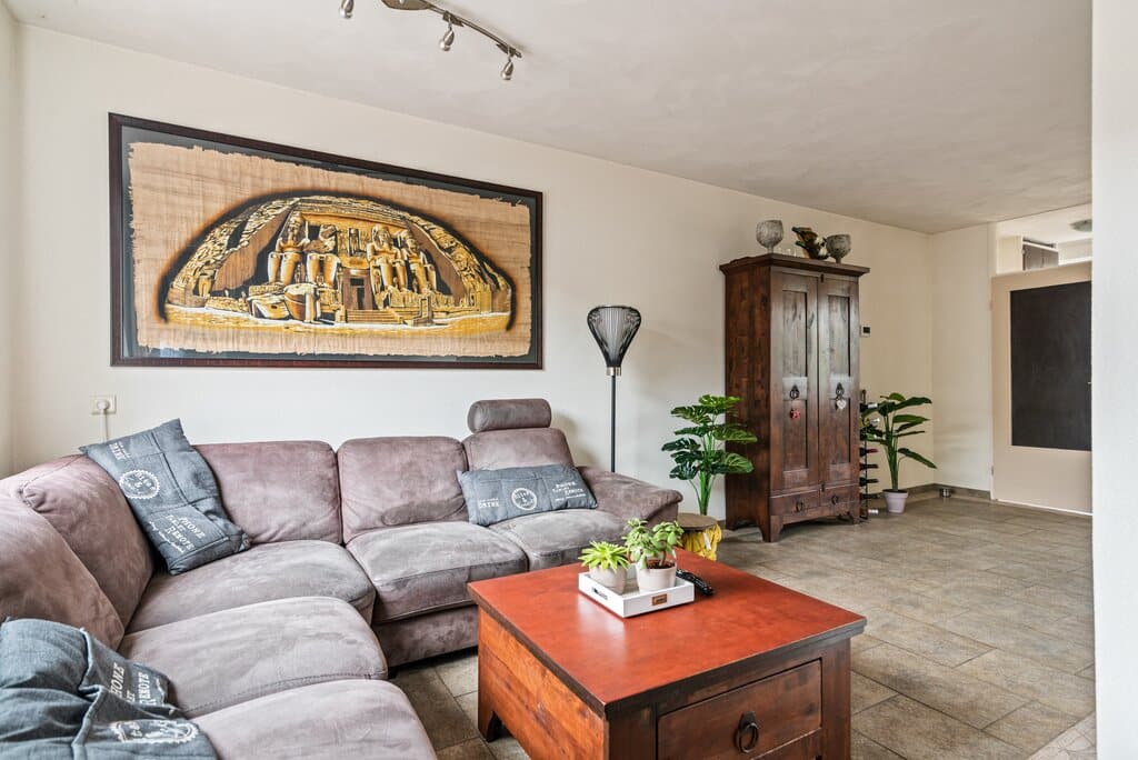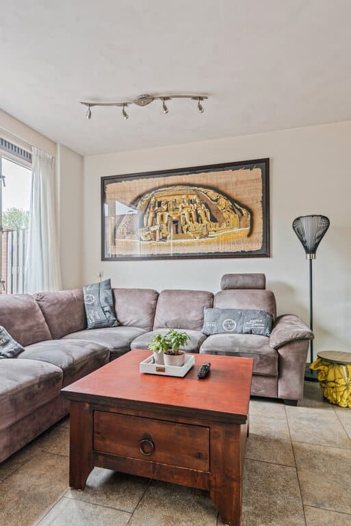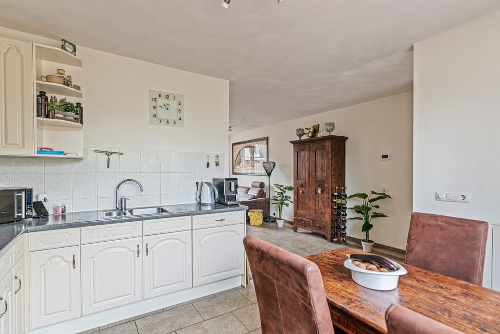 Binnen het woongedeelte wordt meer dan voldoende ruimte geboden voor een zithoek en apart gedeelte voor de eettafel, zodat deze activiteiten goed gescheiden kunnen worden. Een mooie combinatie van neutrale kleuren en lichtinval maken dit woongedeelte tot een heerlijke leefruimte.