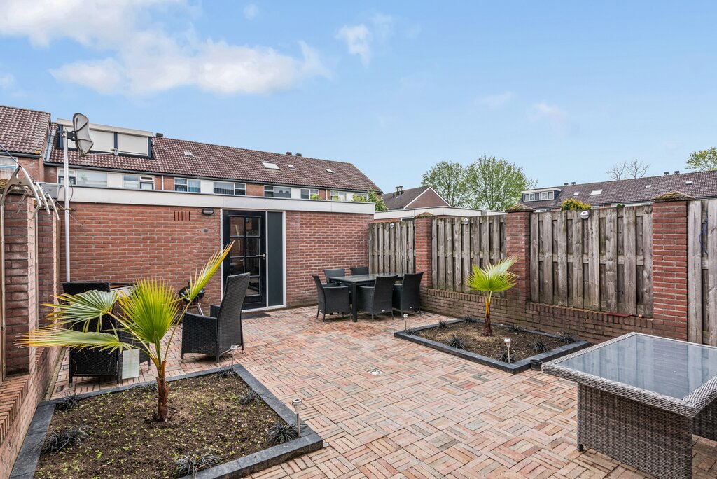 Deze zonnige tuin bezit zowel zon- als schaduwplekken en is voorzien van een sfeervolle bestrating, borders en een onderhoudsarme uitstraling. Voldoende privacy, een achterom en door de diepte en hoekligging voldoende zonuren. Achterin de tuin is nog een stenen berging gesitueerd die mogelijkheden biedt voor uw opslag en tuingereedschap maar met de huidige inrichting ook uitstekende mogelijkheden biedt als chill/hobbyruimte.
