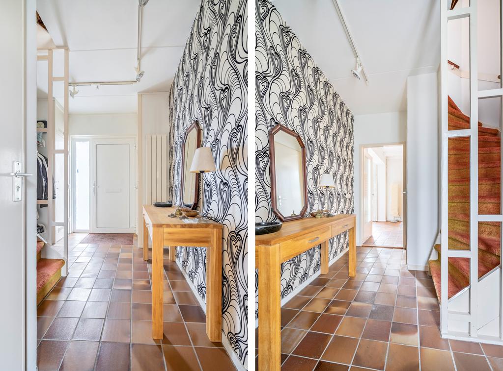 Wonen is in dit, verrassend vormgegeven, woonhuis een dagelijks genot, mede door de geraffineerde indeling, de ruimte en de doordachte zichtlijnen, die zorgen voor harmonie tussen binnen en buiten. De goede verbinding met de zonnige tuin maken deze ruime gezinswoning tot een mooi geheel. De benedenverdieping is ingedeeld in zones, van de keuken naar de eettafel tot aan de ruime woonkamer. De basis van de gehele woning is neutraal en daardoor voor alle mogelijke woonsmaken geschikt. De voorzijde is voorzien van een onderhoudsarme voortuin en diepe oprit die plek biedt aan twee a drie auto’s. We komen binnen via een ruime hal die is voorzien van een handige schoonloopmat, trapopgang naar boven, meterkast, garderobe nis, toilet met fonteintje en toegang tot het hart van de woning.