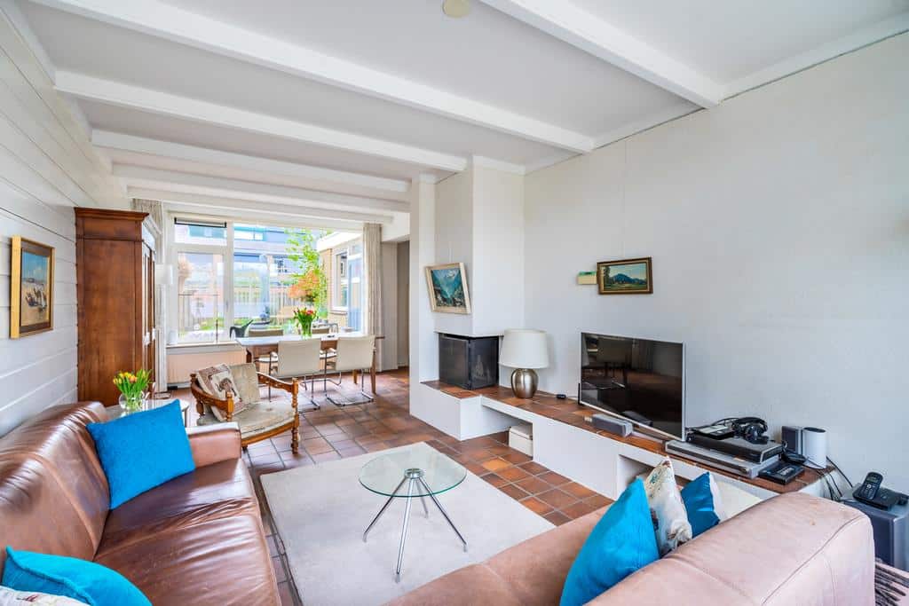 Hetgeen wat in deze woning direct opvalt is het lichtinval. Middels grote raampartijen aan voor- en achterzijde met kunststof kozijnen, een raampartij in de zijgevel en in combinatie met de ligging van het woonhuis ten opzichte van de zon is dit een enorm licht huis. Dit komt ten goede aan het woonklimaat en hierdoor is er tevens een mooi uitzicht op de groenrijke achtertuin en het straatbeeld. Ruimte, licht, sfeer en comfort is waar het in de living om draait! De open haard verzorgt de extra sfeer tijdens de wintermaanden.