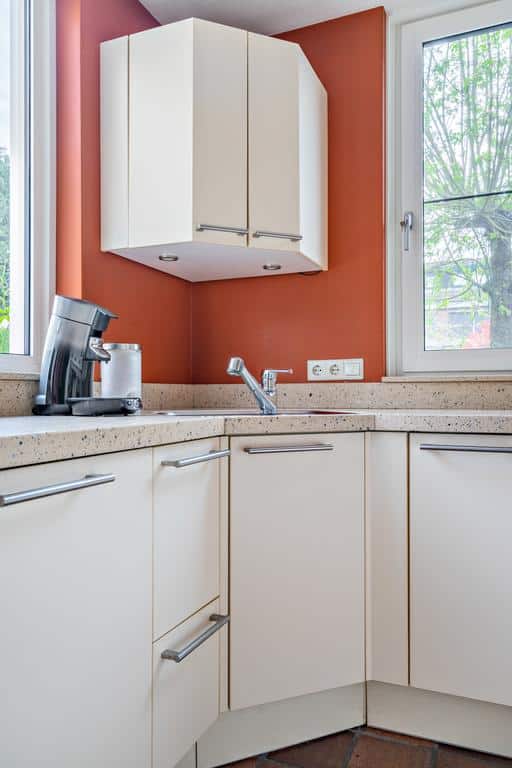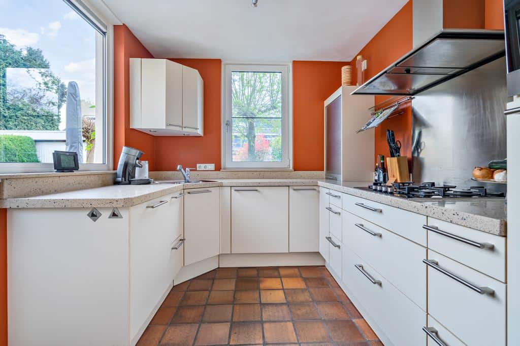 De fijne keuken biedt in combinatie met het eetgedeelte een uitgebreide plek om heerlijk te kokkerellen maar ook om heerlijk te tafelen. Met diverse inbouwapparatuur en voldoende kastruimte is deze keuken, die in 2001 is verbouwd, meer dan compleet ingericht. De keuken is voorzien van een 4 pits gaskookplaat (aug. 2016) met afzuigkap, combi magnetron/oven (dec. 2014), vaatwasser, koelkast, 3-laden vrieskast en spoelbak. De één handle kraan bij deze spoelbak is voorzien van een uittrekbare uitloop met broeskop. Verder is de keuken voorzien van een keukenboiler (juni 2019) en een draaideur carrousel bestemd voor pannen. Een heerlijke lichte ruimte afgewerkt met een composieten blad met waterkering.