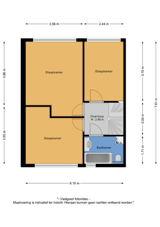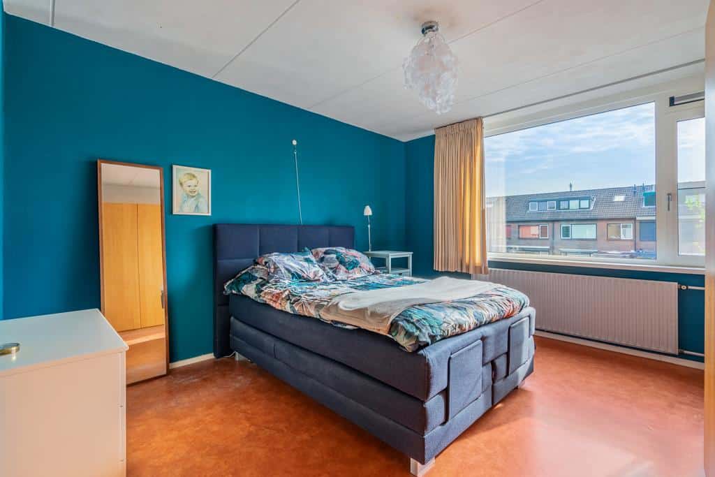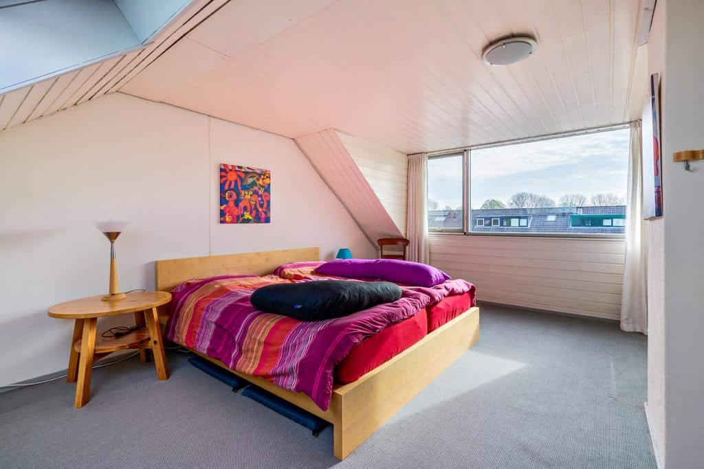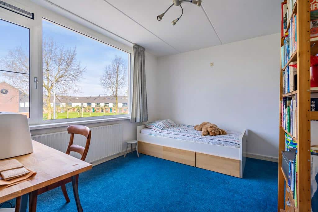 Deze grootste slaapkamer van circa 14 m² biedt meer dan voldoende ruimte voor een groot bed met (kleding)kast. Dit geldt overigens ook voor de overige kamers die ruim zijn opgezet. De kleinste kamer leent zich uiteraard ook prima voor kantoor/werkruimte of een inloopkast.