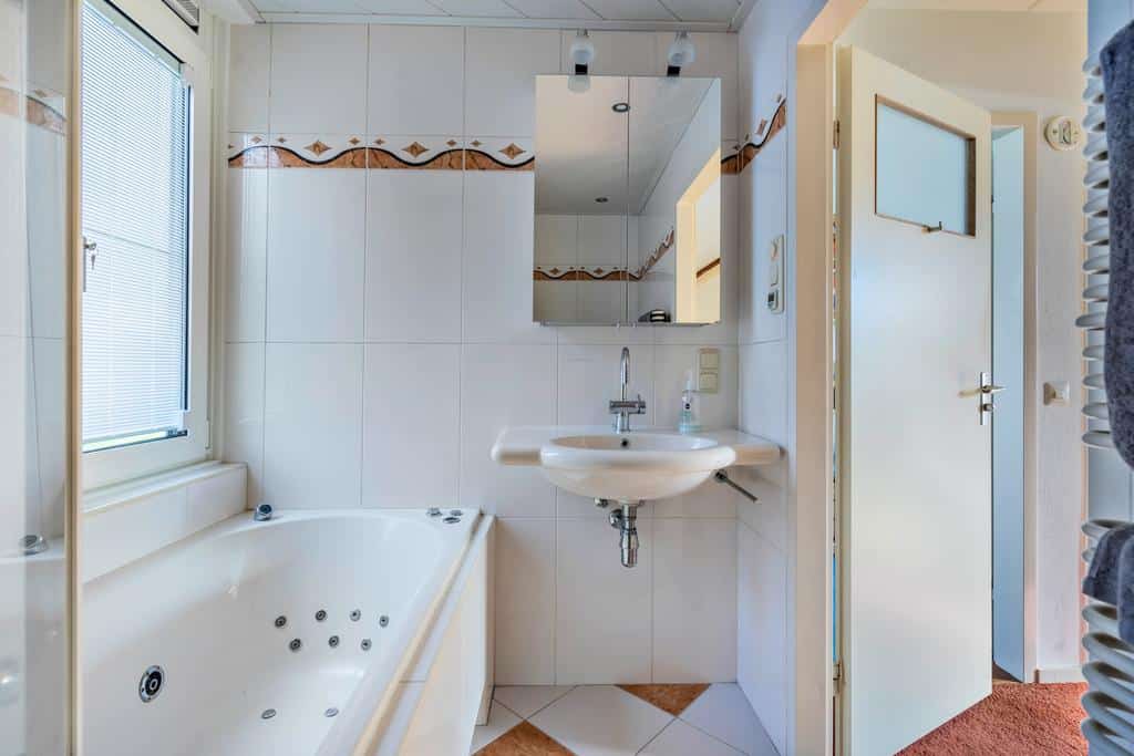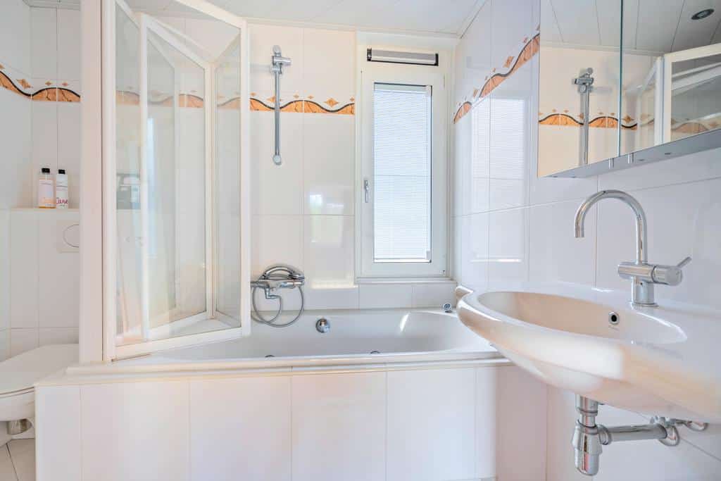 Op deze verdieping vinden we een nette en praktische badkamer die in 2004 is verbouwd. Deze is voorzien van een whirlpool ligbad inclusief verlichting met handdouche en scherm, wastafel, design spiegelkast met opbergruimte, wand urinoir, toilet en designradiator. De badkamer is geheel betegeld met een lichte tegel. Handige extra’s zijn de elektrische vloerverwarming, dimbare inbouwspotjes en de mechanische ventilatie. Door een groot raam is er naast het heerlijke licht ook voldoende natuurlijke ventilatie aanwezig. Voor de nodige privacy is dit raam voorzien van ingesloten, bedienbare luxaflex. Een sanitaire ruimte met veel potentie en mogelijkheden.