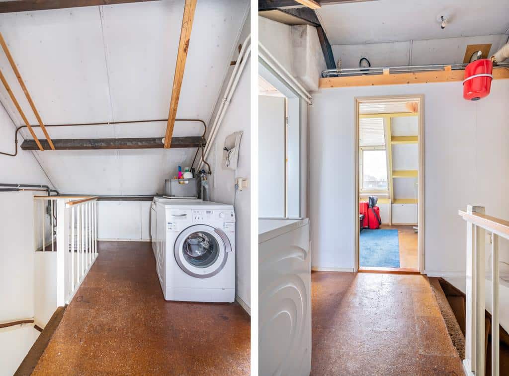 Momenteel vinden we hier een voorzolder met toegang tot een vierde en vijfde (slaap)kamer met bergruimte achter de knieschotten. Op de voorzolder treffen we de aansluitingen voor wasmachine en droger en de cv installatie (Nefit, 2021). Door de riante afmetingen zijn hier voldoende mogelijkheden.