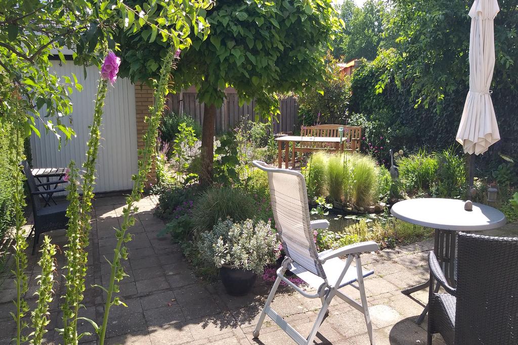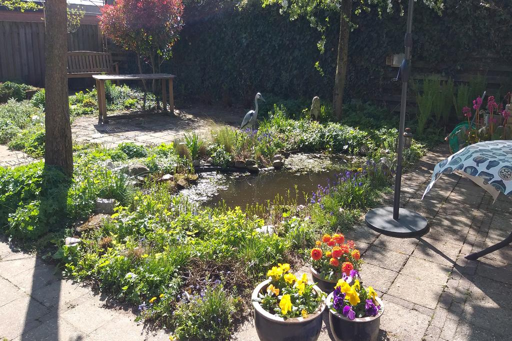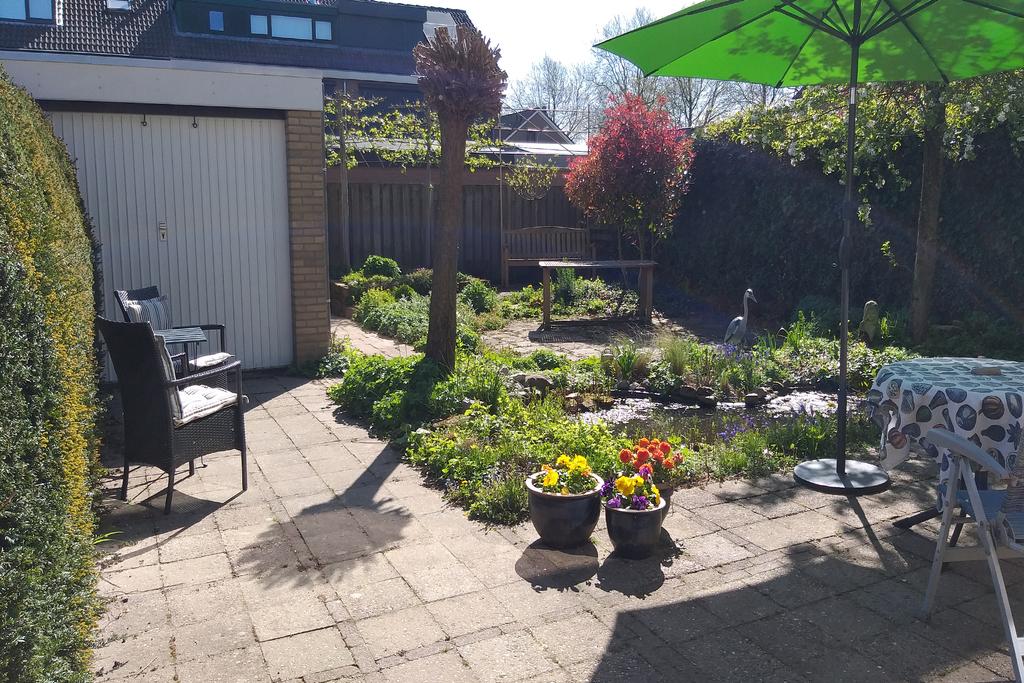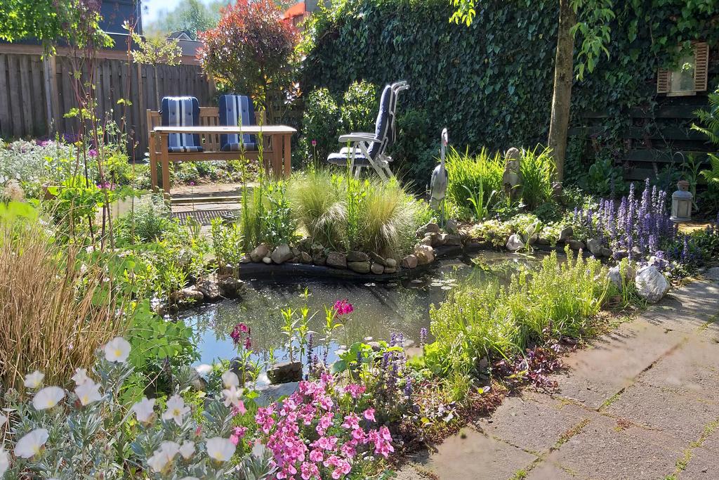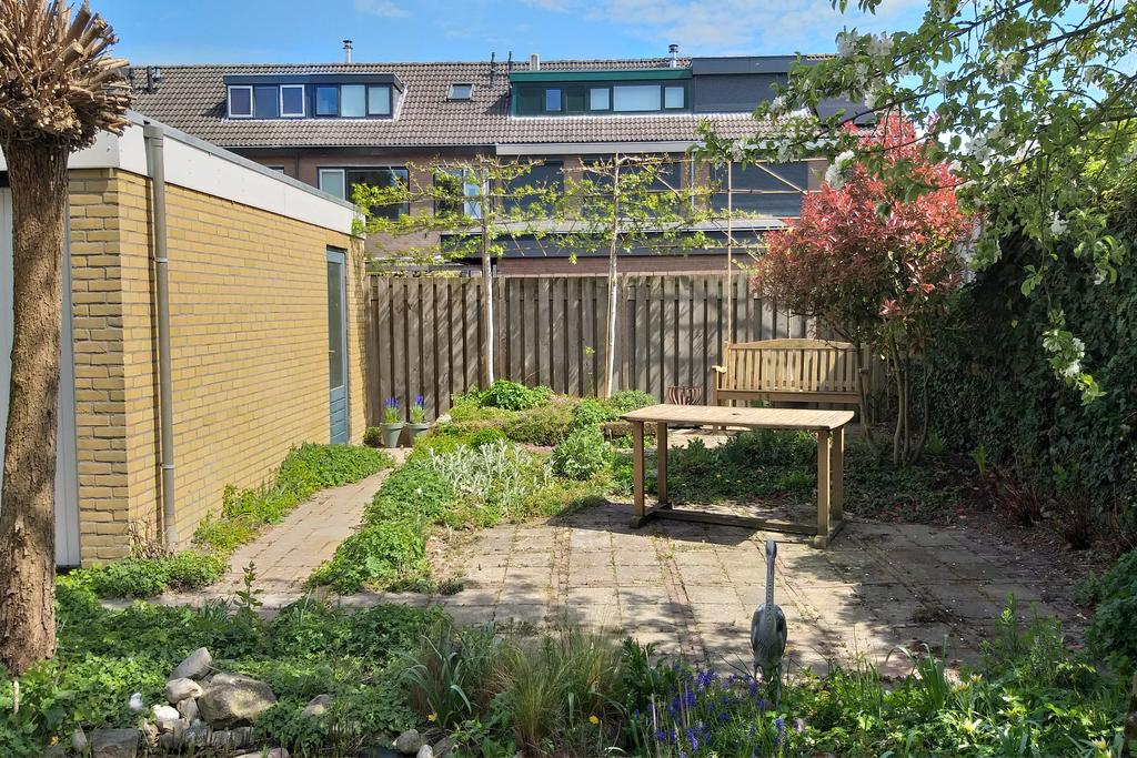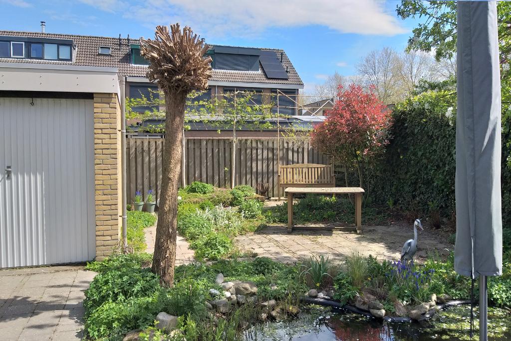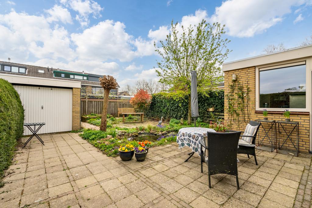 De tuin biedt een heerlijke wisselwerking in natuurschoon met mooi groen gecombineerd met straatwerk, diverse mogelijkheden tot zongerichte terrassen, een vijverpartij en een optimale privacy. Door de ideale ligging kunt u naast een schaduwterras in een hete zomer, tevens optimaal van de zon genieten in een andere gedeelte van deze tuin. Door de geïsoleerde ligging van de tuin geniet u hier volledig van uw vrijheid en privacy. Verder is de tuin voorzien een buitenkraan, elektra en buitenlampen met sensoren.