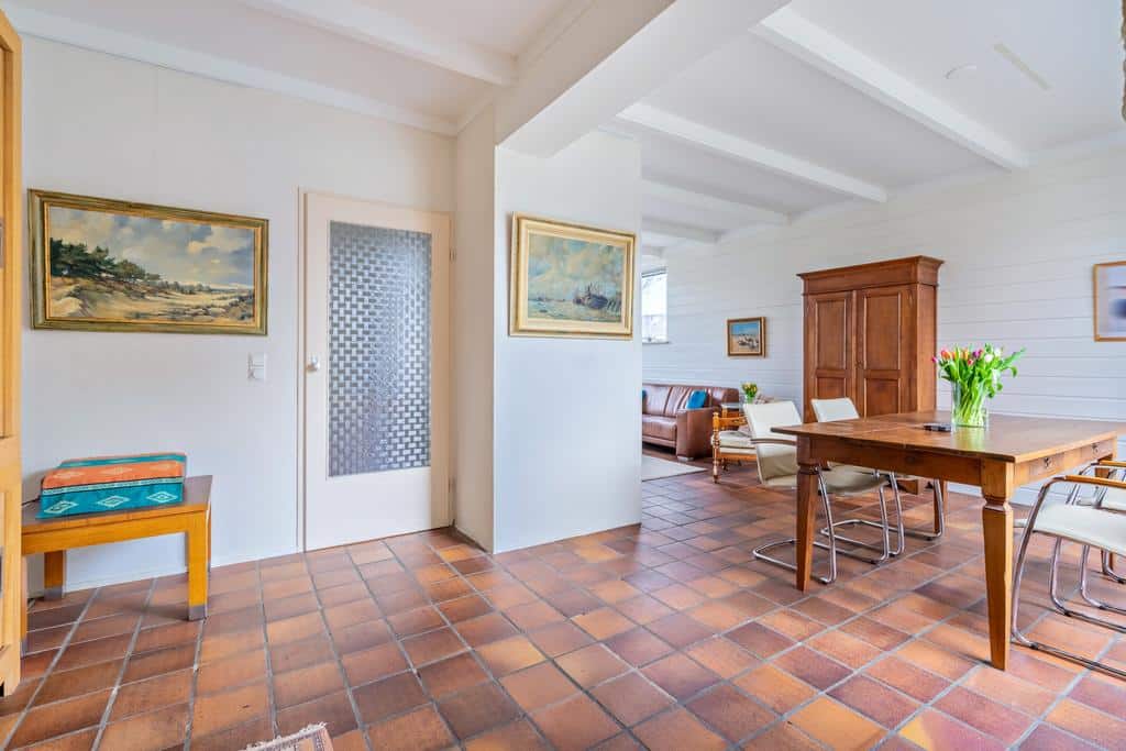 Er is bij deze woning aandacht besteed aan vele details, waarbij gebruik is gemaakt van goede materialen. Zowel de binnen- als de buitenkant is zichtbaar met zorg en liefde opgebouwd. Er is gekozen voor duidelijke ruimtes die logisch in elkaar overlopen, waardoor o.a. de benedenverdieping heel open en gezellig is geworden. Alles heeft een functie en een bepaalde knusheid. Neem bijvoorbeeld de zithoek aan de voorzijde die overloopt in het eetgedeelte en vervolgens naar de half open keuken aan de achterzijde.