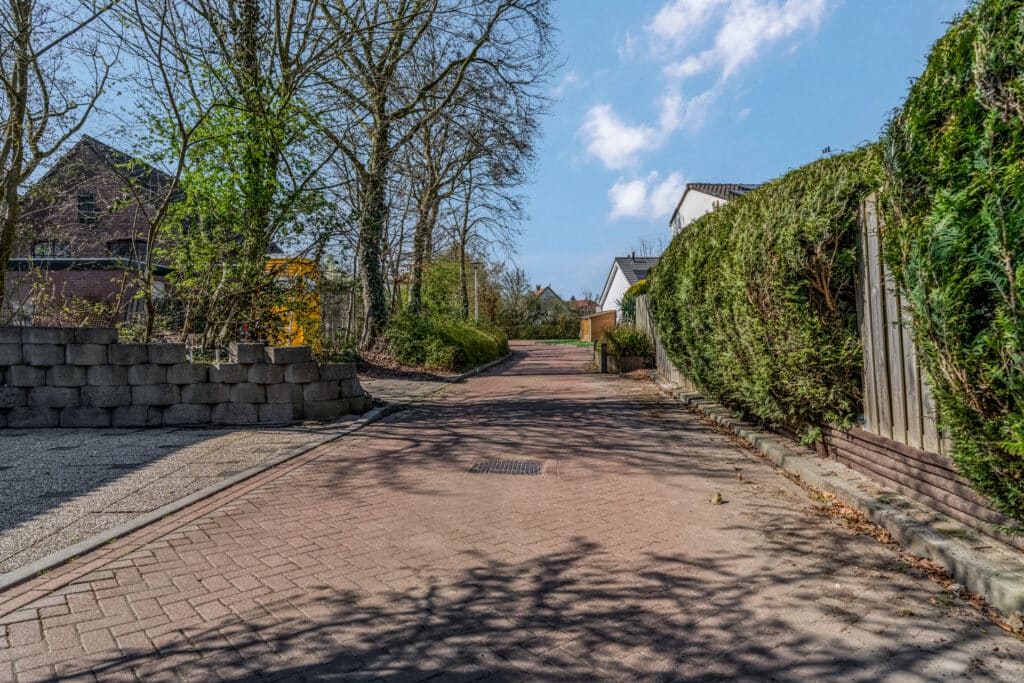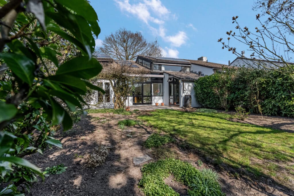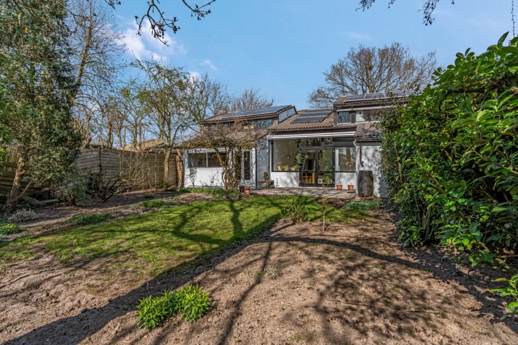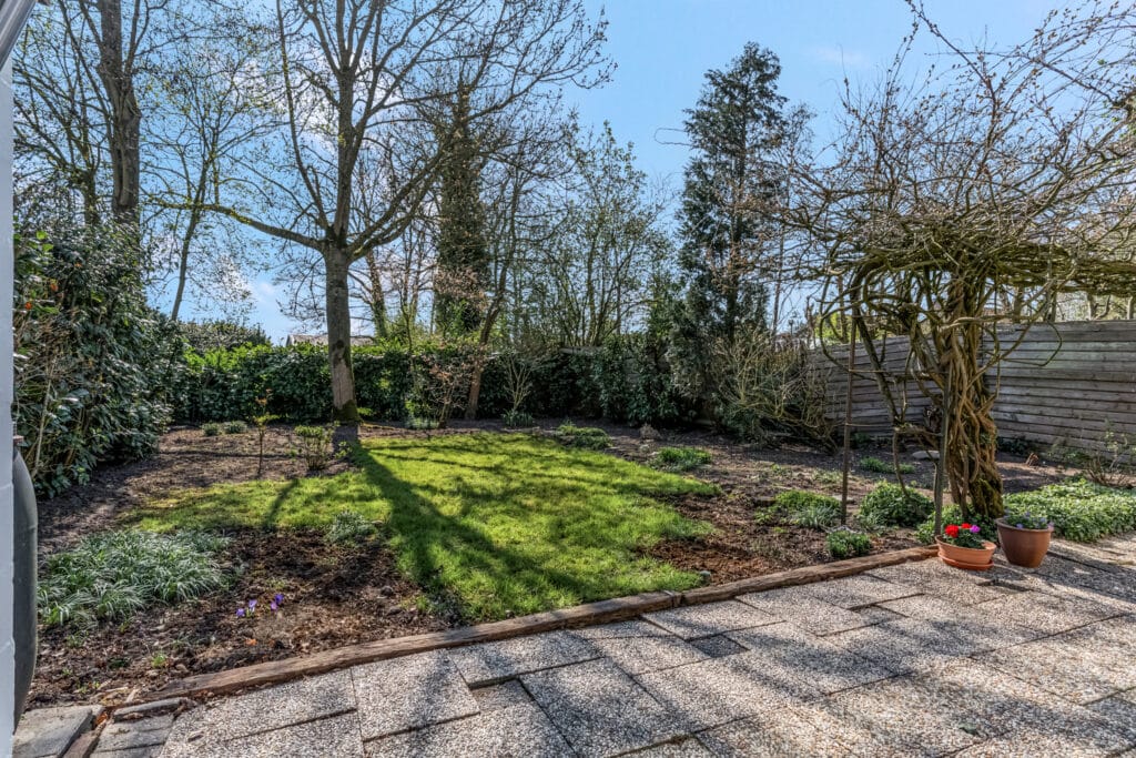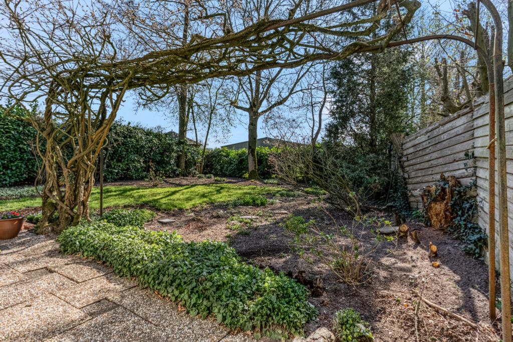 Het terras bij de woning vormt een fijne plek voor een loungehoek of grote eettafel, terwijl het gazon en de speelse borders met struiken en bomen de tuin een groene en levendige uitstraling geven. Voor de liefhebbers van tuinieren is er ruimte genoeg om de groene vingers hun werk te laten doen, maar ook wie vooral ontspanning zoekt voelt zich hier helemaal thuis. Of je nu kiest voor een strak onderhouden tuin of juist een speelsere, natuurlijke inrichting – deze buitenruimte laat zich volledig aanpassen aan jouw wensen. Ook voor het plaatsen van een fraaie overkapping of voor het aanleggen van een eigen moestuin is meer dan voldoende plek.