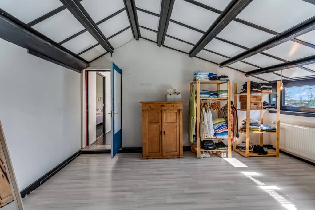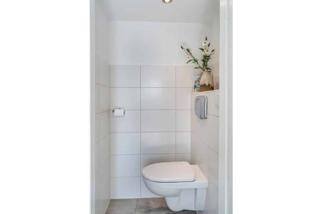 De aangrenzende bijkeuken is een echte meerwaarde voor dit huis. Deze ruimte, die ook bereikbaar gemaakt kan worden vanaf de voorzijde van de woning, biedt volop mogelijkheden als wasruimte, garderobe of praktische bergruimte. Ideaal om extra apparaten te plaatsen, jassen en tassen weg te hangen of simpelweg alles netjes uit het zicht te houden – een onmisbare toevoeging voor dagelijks comfort.