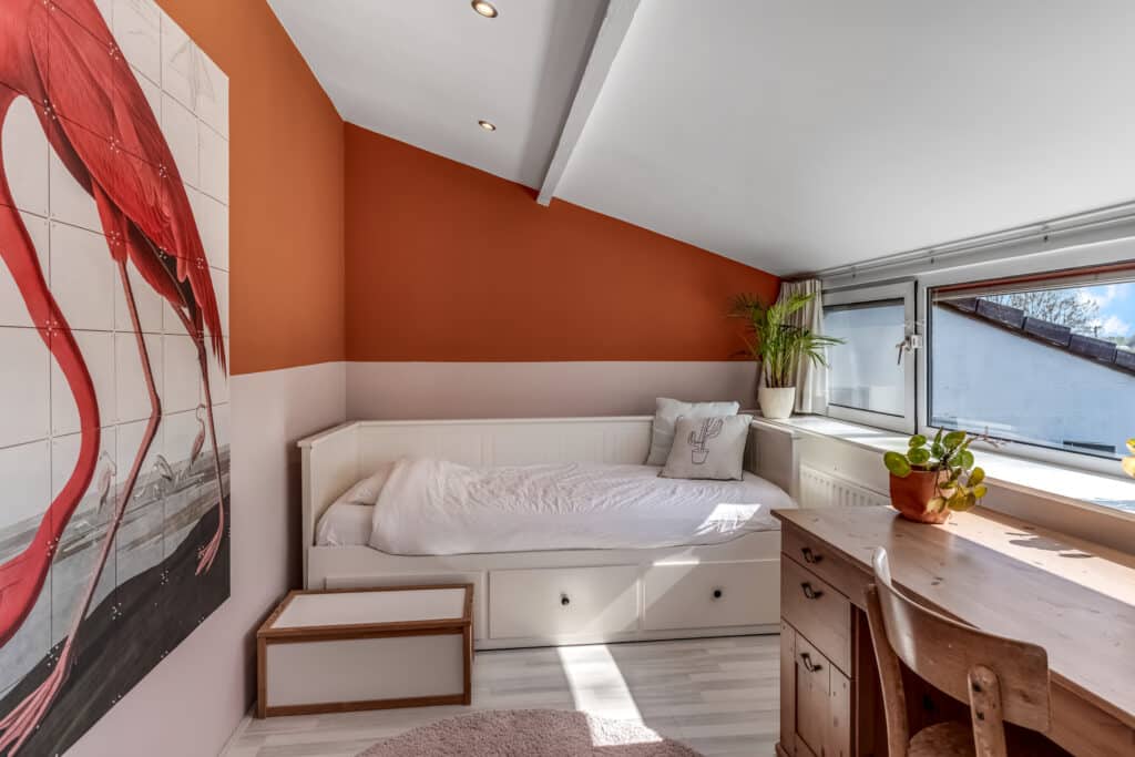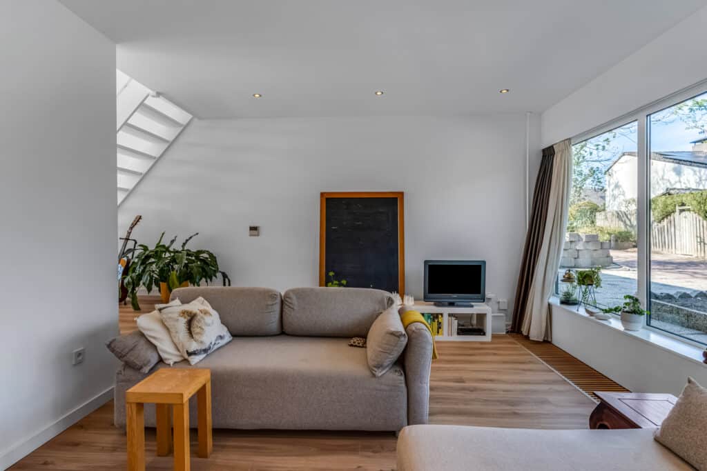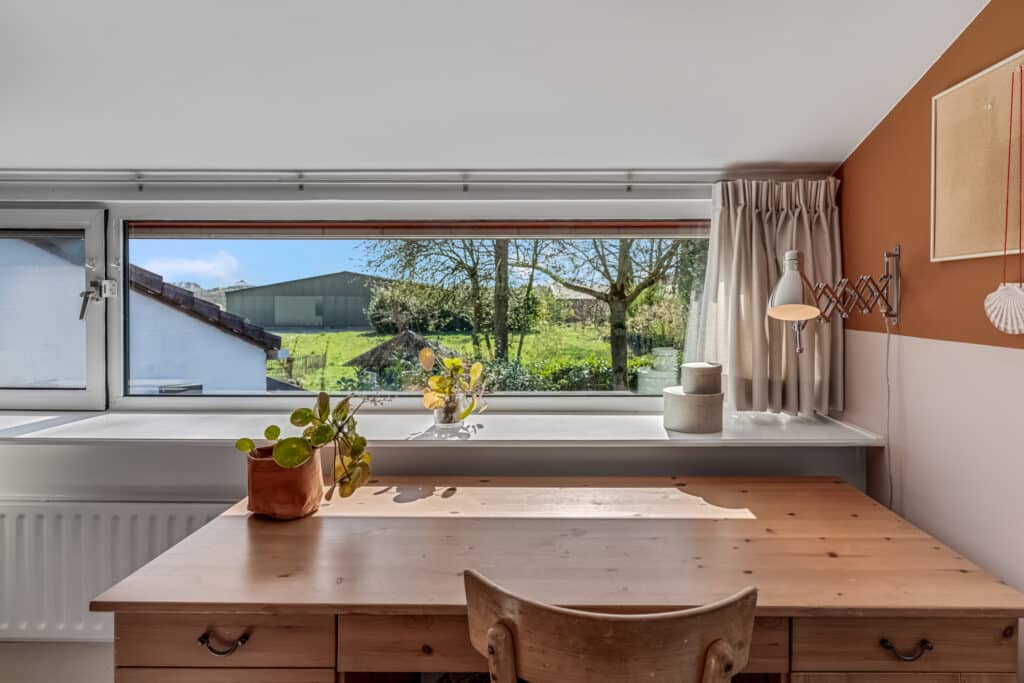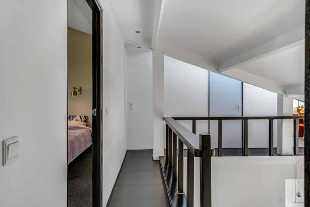De speelse vide leidt je naar de eerste verdieping, waar een overloop toegang biedt tot alle ruimtes. De master bedroom ligt boven de zitkamer en geniet van een zee van licht dankzij de vele raampartijen. Daarnaast zijn er nog twee slaapkamers, beide ruim genoeg voor een comfortabel bed en een kast, ideaal voor kinderen, logees of een werkkamer.