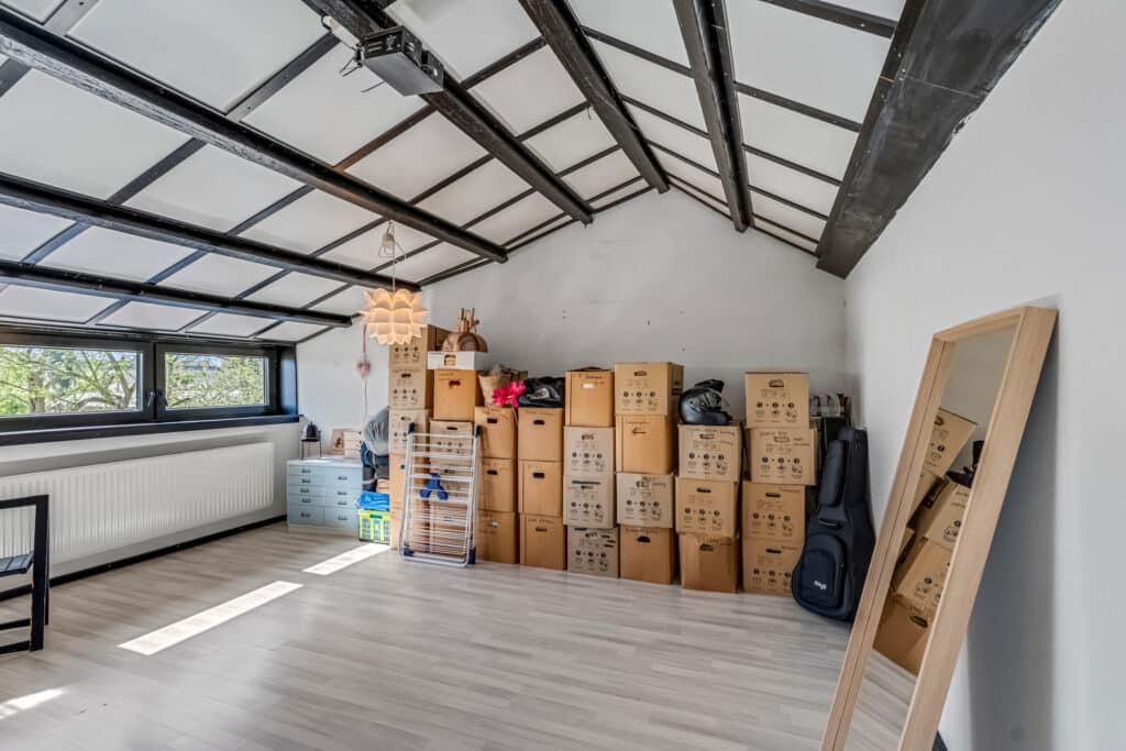 Een uniek pluspunt aan deze woning is de gigantische aangebouwde garage van circa 50 m². Voorzien van openslaande deuren aan zowel de voor- als achterzijde en een betonnen vloer is dit de ideale plek voor een auto, motor(en), fietsen of hobbyruimte. Ook een werkbank of extra opslagruimte behoren tot de mogelijkheden.