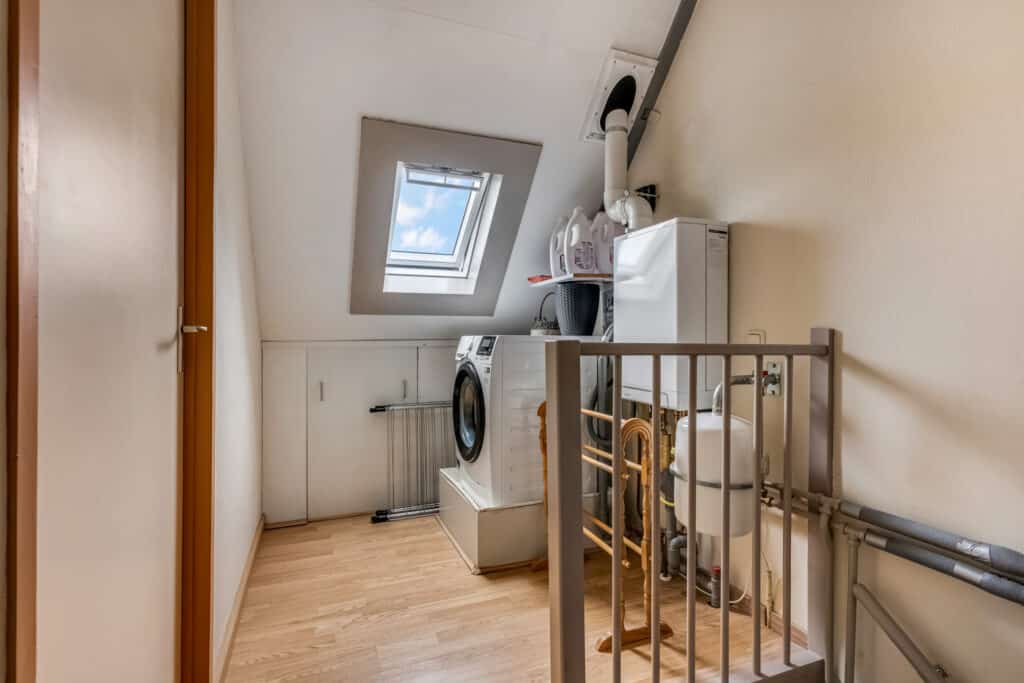 De tweede verdieping biedt een keurige voorzolder met dakraam, wasmachineaansluiting, knieschotten voor bergruimte, en toegang tot een fijne vierde slaapkamer met groot dakraam. De Intergas CV-ketel (2023) is recent geplaatst en uitstekend onderhouden.
