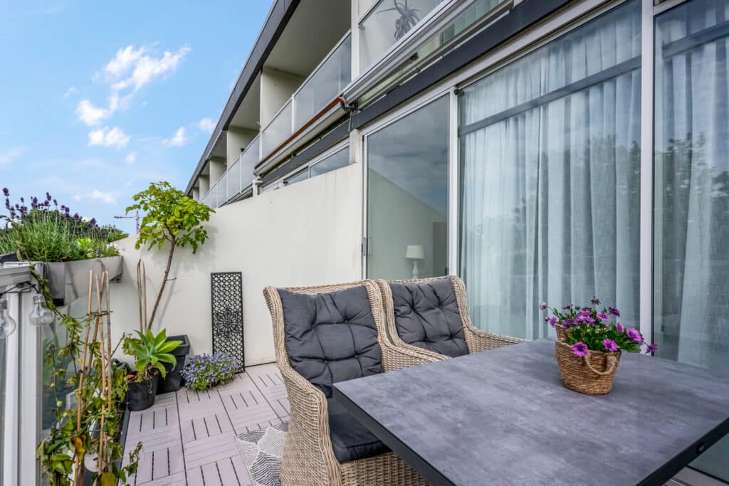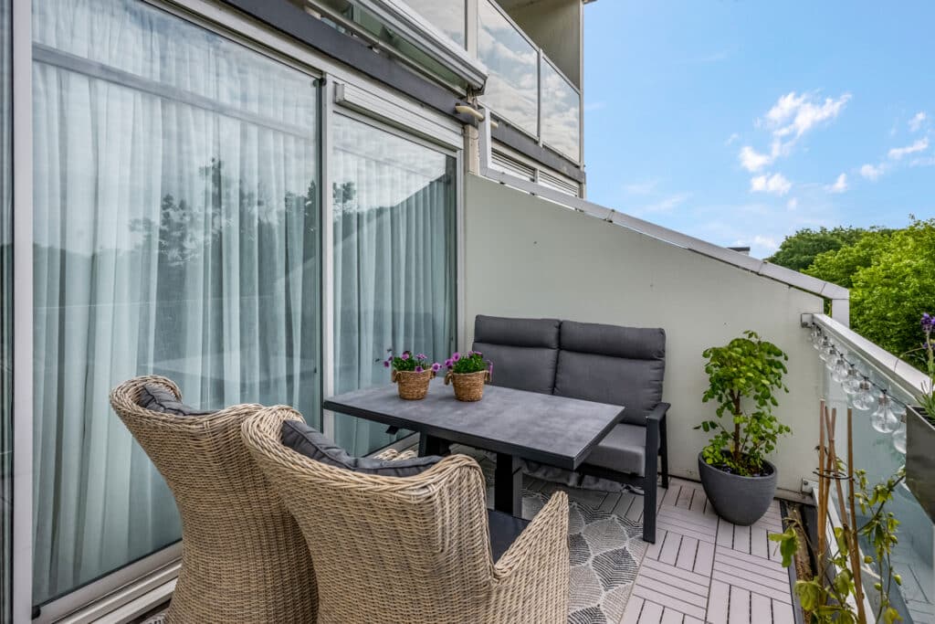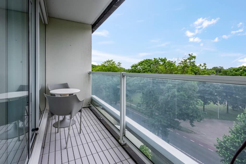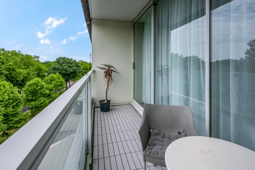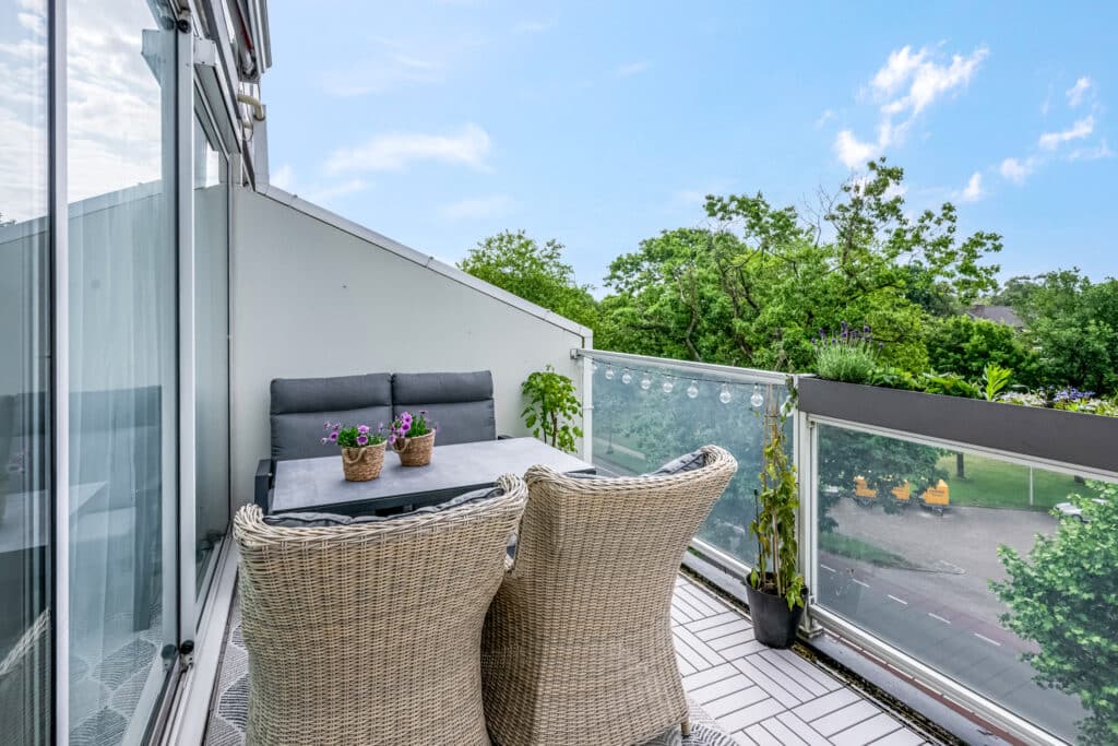 Zoals benoemd is het woning brede balkon, op zowel de eerste als tweede verdieping, een absolute meerwaarde bij dit appartement. Deze biedt een plek om van het uitzicht te genieten en de buitenlucht te ervaren wanneer nodig. Daarnaast is er voldoende ruimte voor een gezellig inrichting.