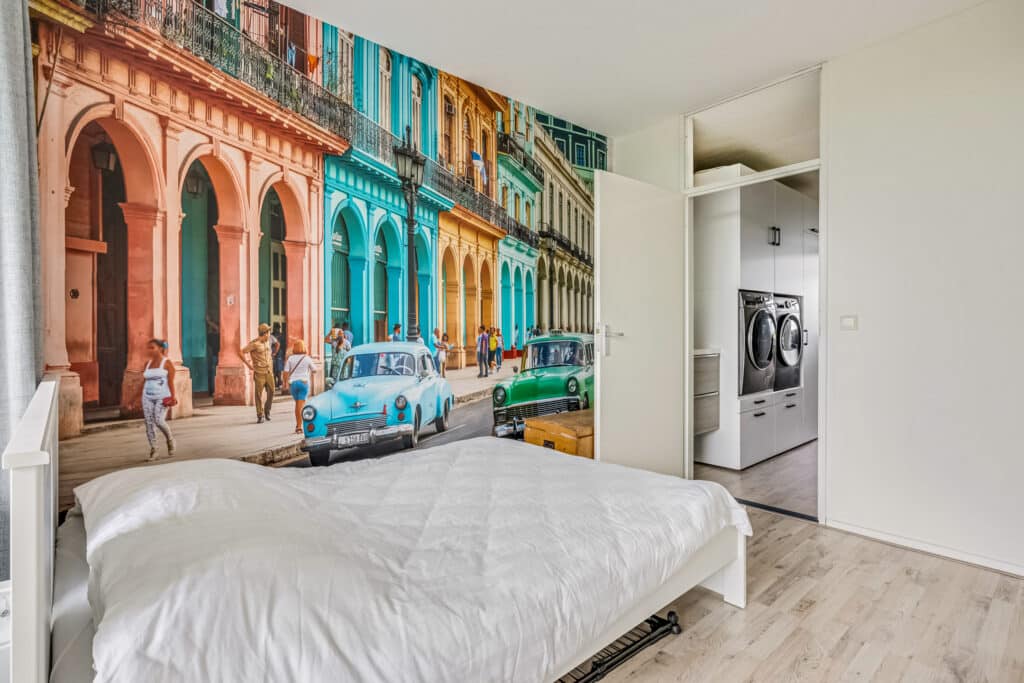 Via de trap in de hal bereik je de bovenverdieping. Hier kom je op een ruime overloop, opnieuw met laminaatvloer in neutrale tinten. Wat direct opvalt is de enorme hoeveelheid ruimte: maar liefst vijf slaapkamers, allemaal voorzien van dezelfde afwerking en geschikt voor uiteenlopende doeleinden zoals logeerkamer, werkkamer, hobbyruimte of natuurlijk slaapkamers. De wasruimte is praktisch ingericht met een handige bergkast en zelfs een extra wasmeubel.