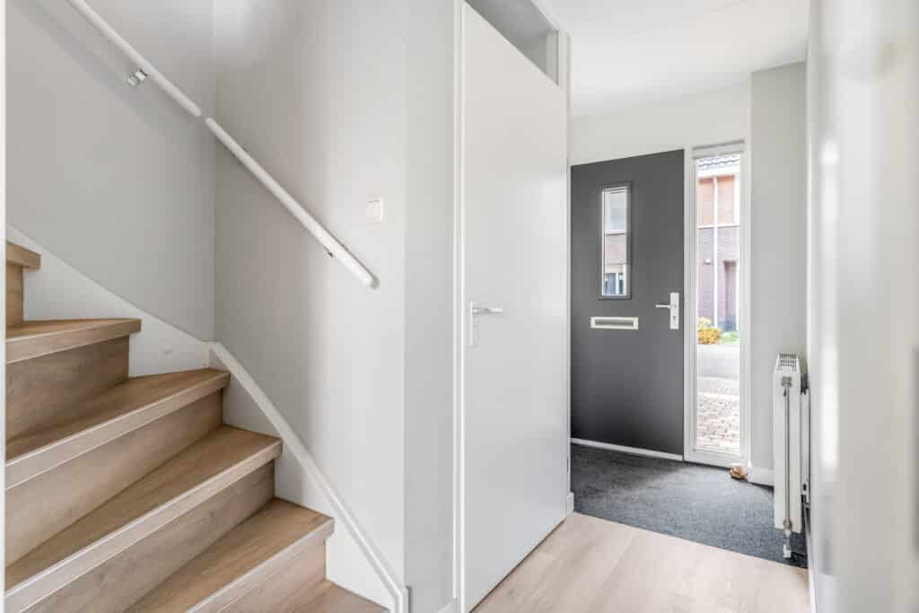 Bij aankomst springt de nette voortuin direct in het oog. Binnen komen doet u in een verzorgde hal met garderobehoek, moderne meterkast (6 groepen en aparte kookgroep), kruipruimte, schoonloopmat en een keurig toilet met fontein. De pvc-vloer met hoog plintwerk, die over de gehele woonlaag is gelegen, geeft de entree een eigentijdse en verzorgde uitstraling, en de vaste trap is netjes bekleed met dezelfde pvc-afwerking voor een mooi geheel.