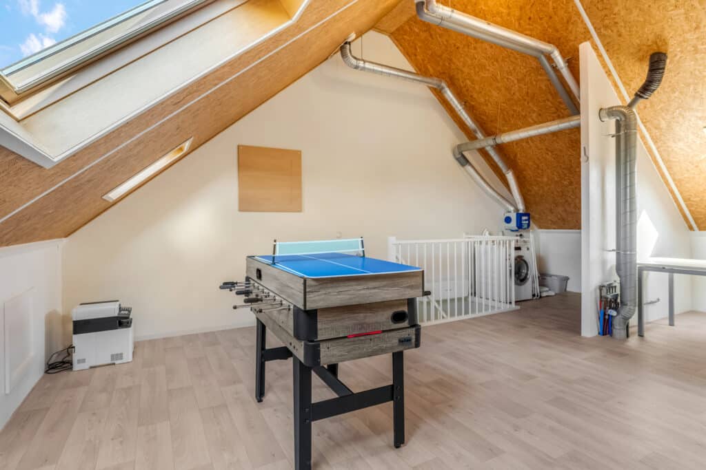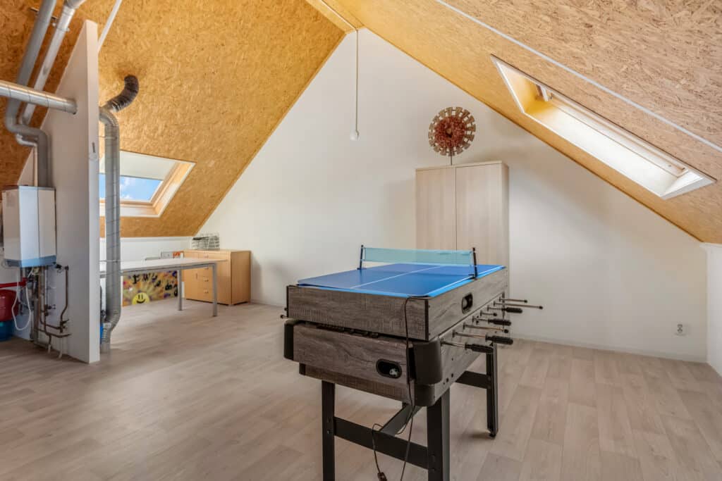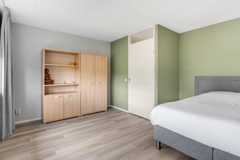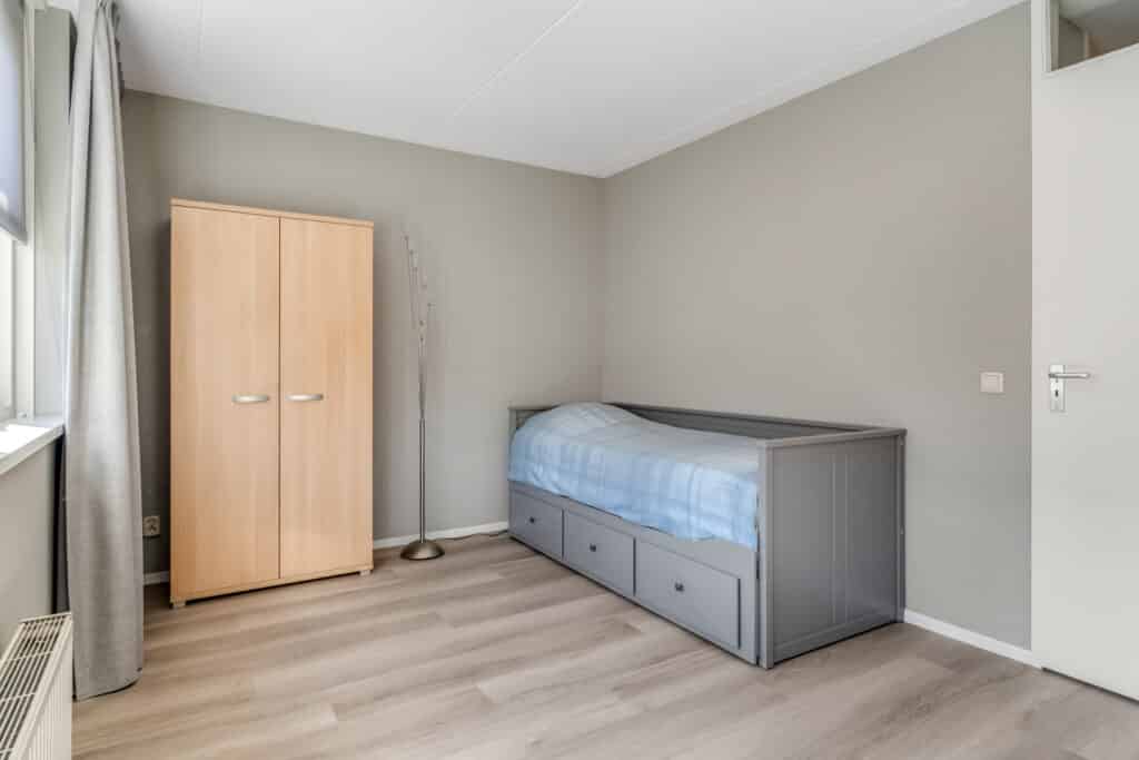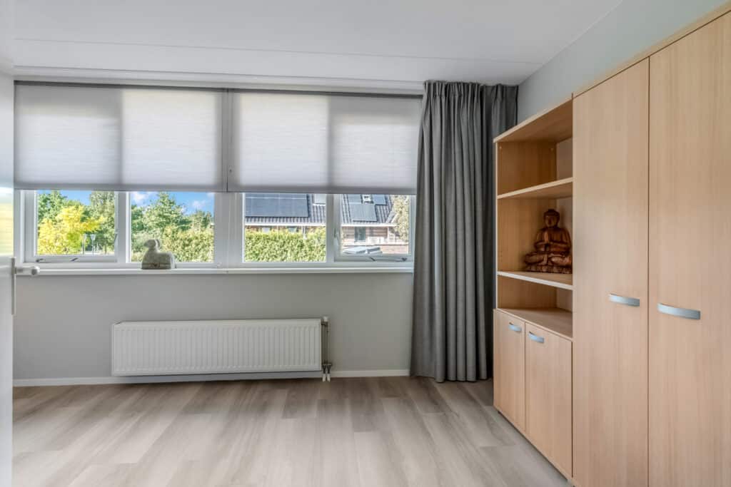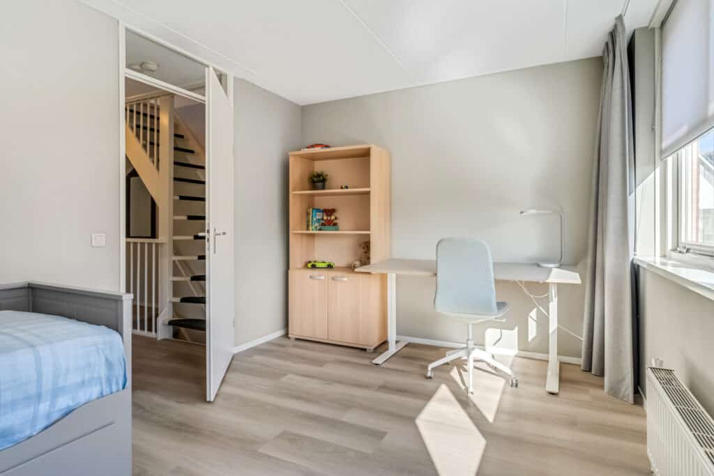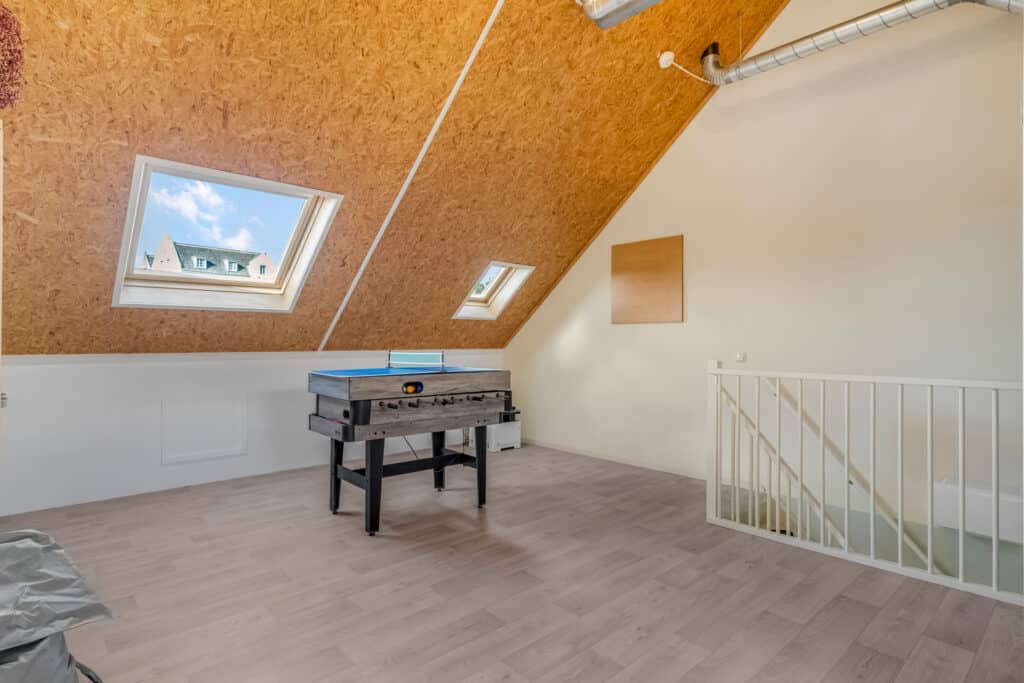 De vaste trap brengt u naar de derde verdieping, een plek die direct een gevoel van vrijheid oproept. Het hoge plafond en de overvloed aan licht geven deze verdieping een open en luchtige sfeer, waar u alle kanten mee op kunt. Stelt u zich voor: een ruime master bedroom waar u ’s ochtends de dag rustig begint, gecombineerd met een eigen werk- of hobbyhoek. Of misschien juist twee gezellige slaapkamers voor kinderen of logees, waar ieder zijn eigen plek kan vinden. De knieschotten verbergen bovendien handige bergruimte, waardoor de kamer strak en overzichtelijk blijft. En doordat de afwerking netjes is doorgetrokken, voelt de ruimte direct compleet en klaar voor gebruik.