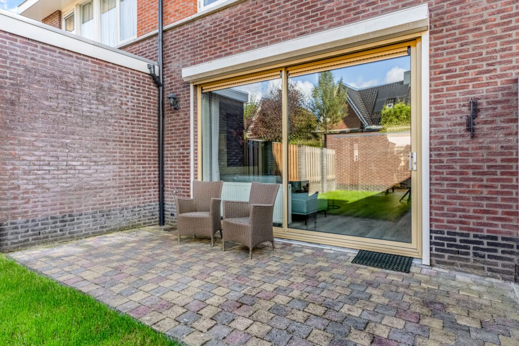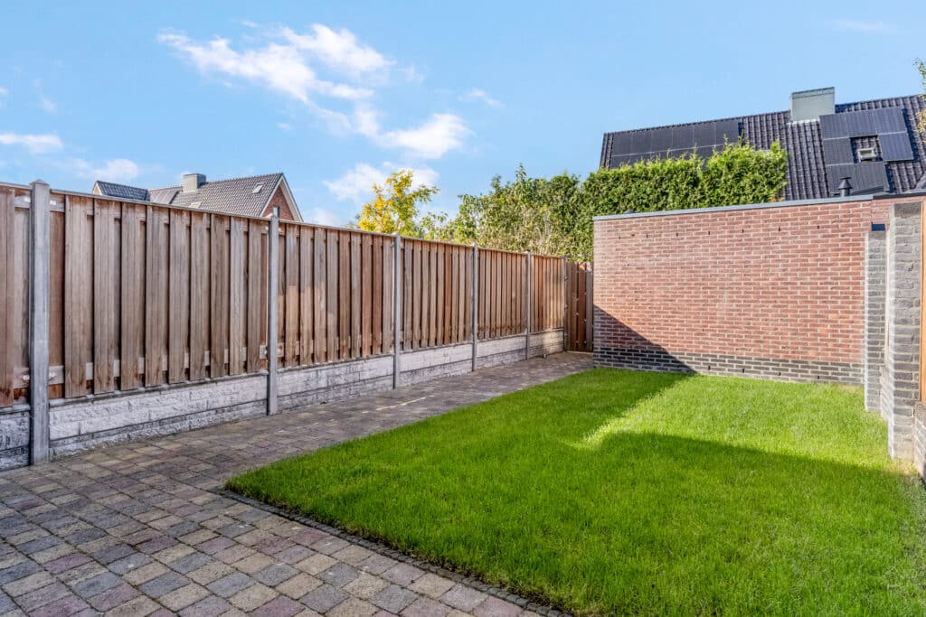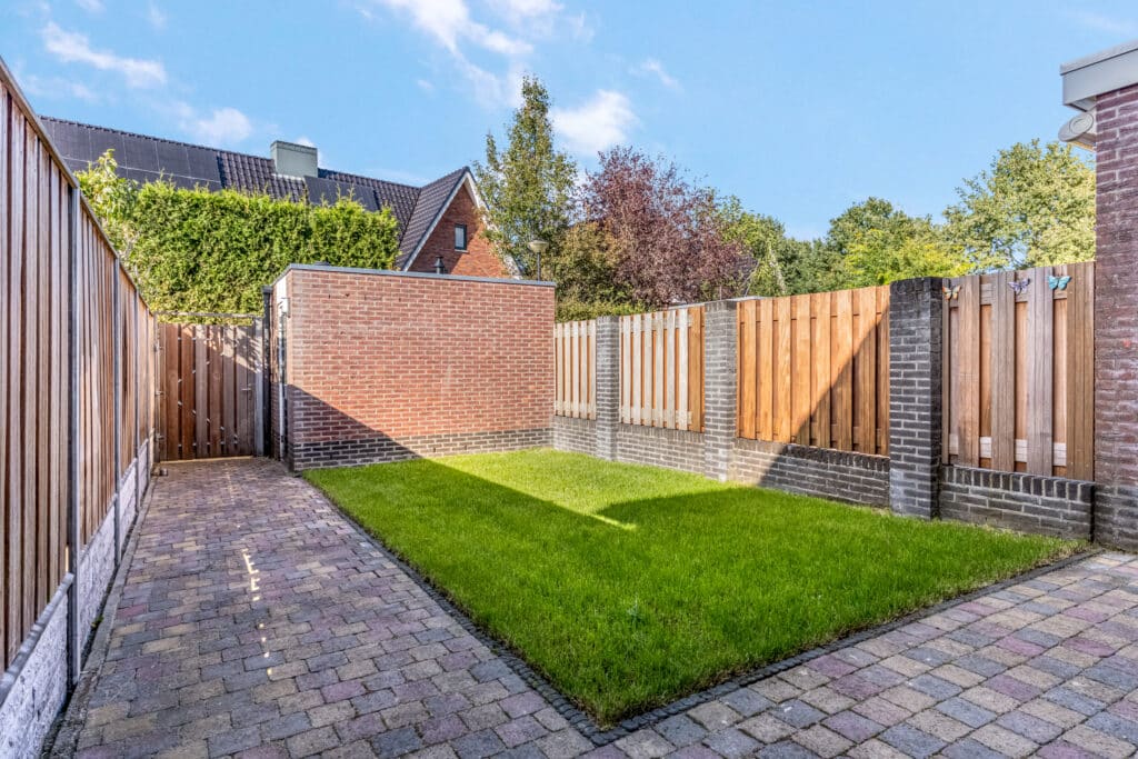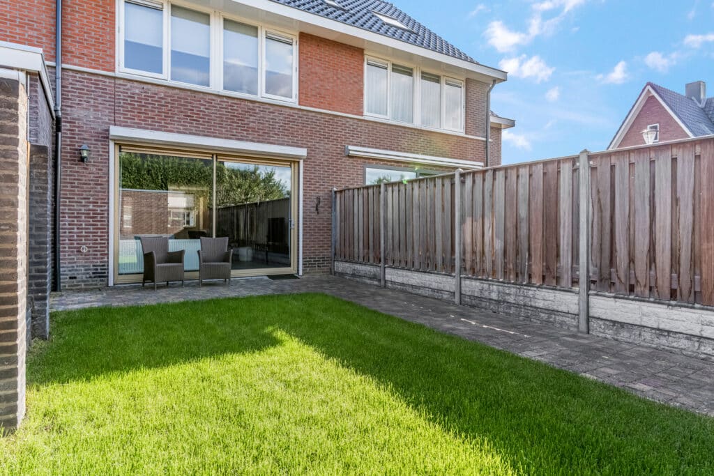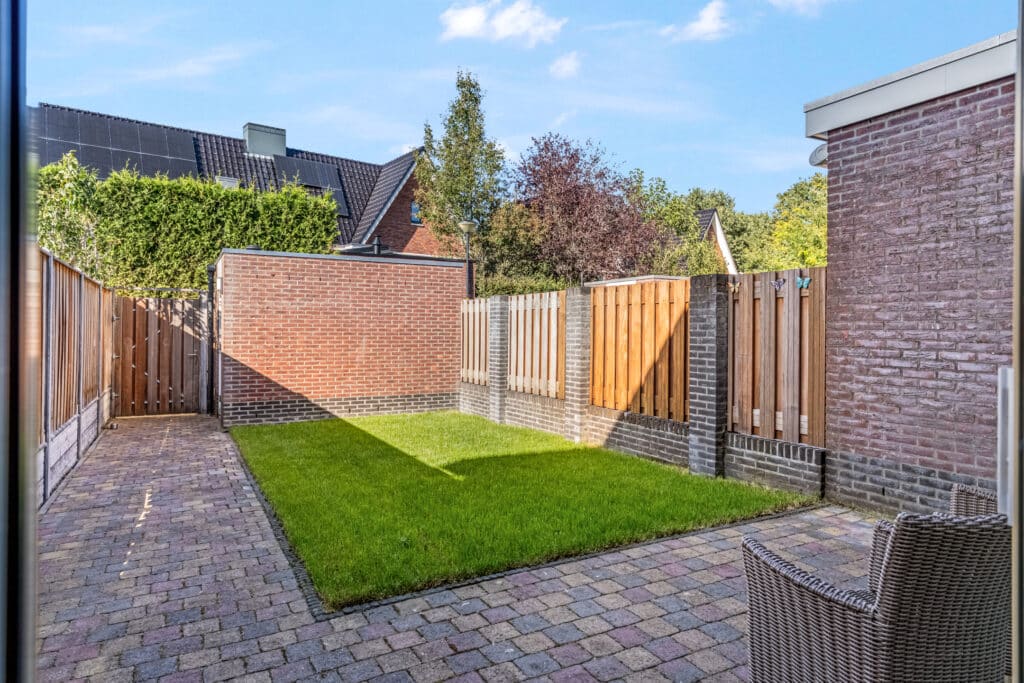 De achtertuin is strak en onderhoudsvriendelijk aangelegd met een terras direct aan huis, een keurig gazon, een stenen berging en nette erfafscheidingen. Dankzij het elektrische rolluik aan de achtergevel kunt u de woonkamer optimaal afsluiten en verduisteren.