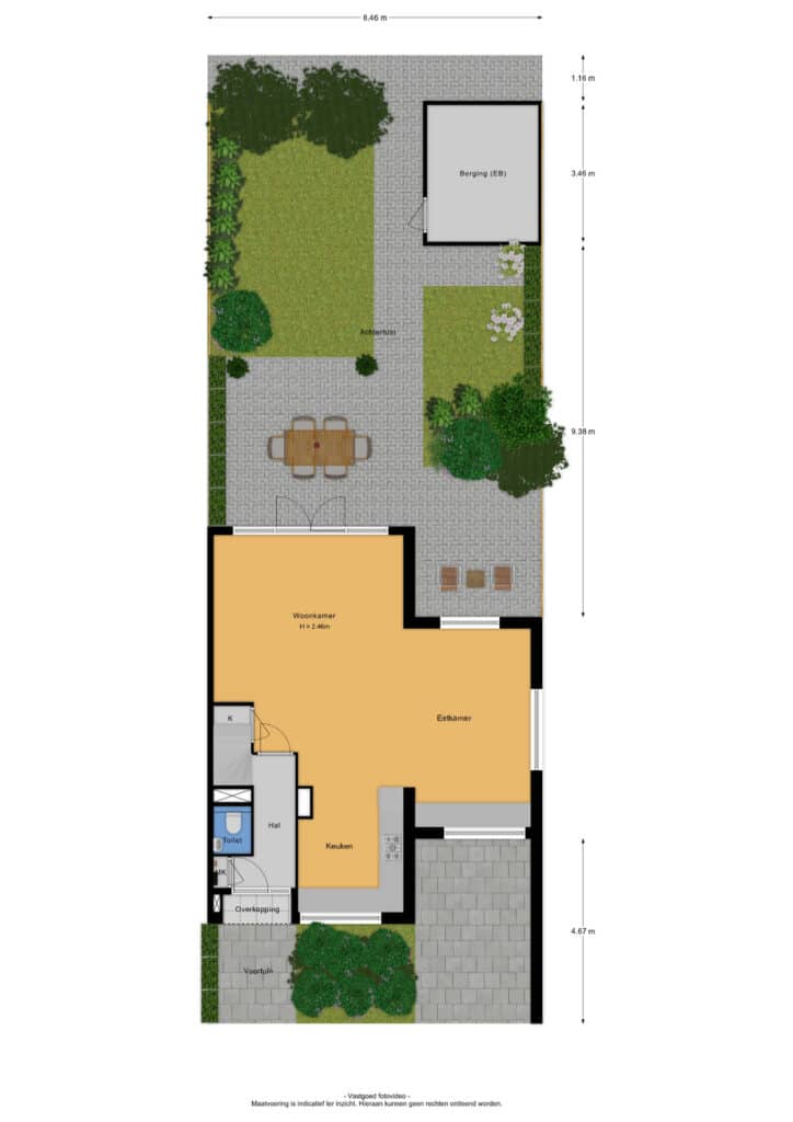 – Onderhoudsvriendelijke achtertuin met berging en achterom;