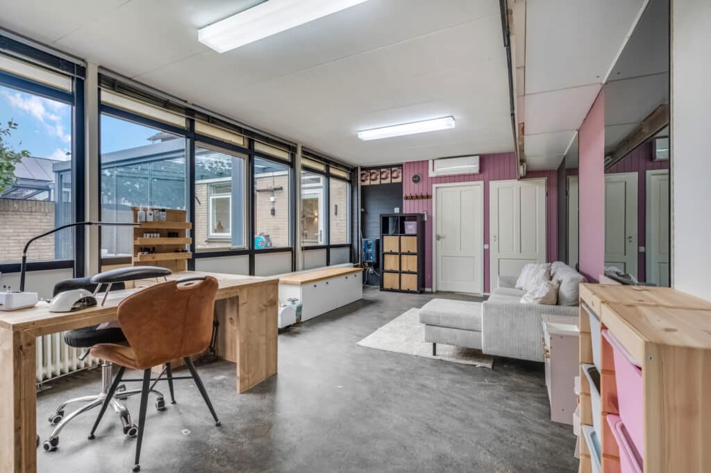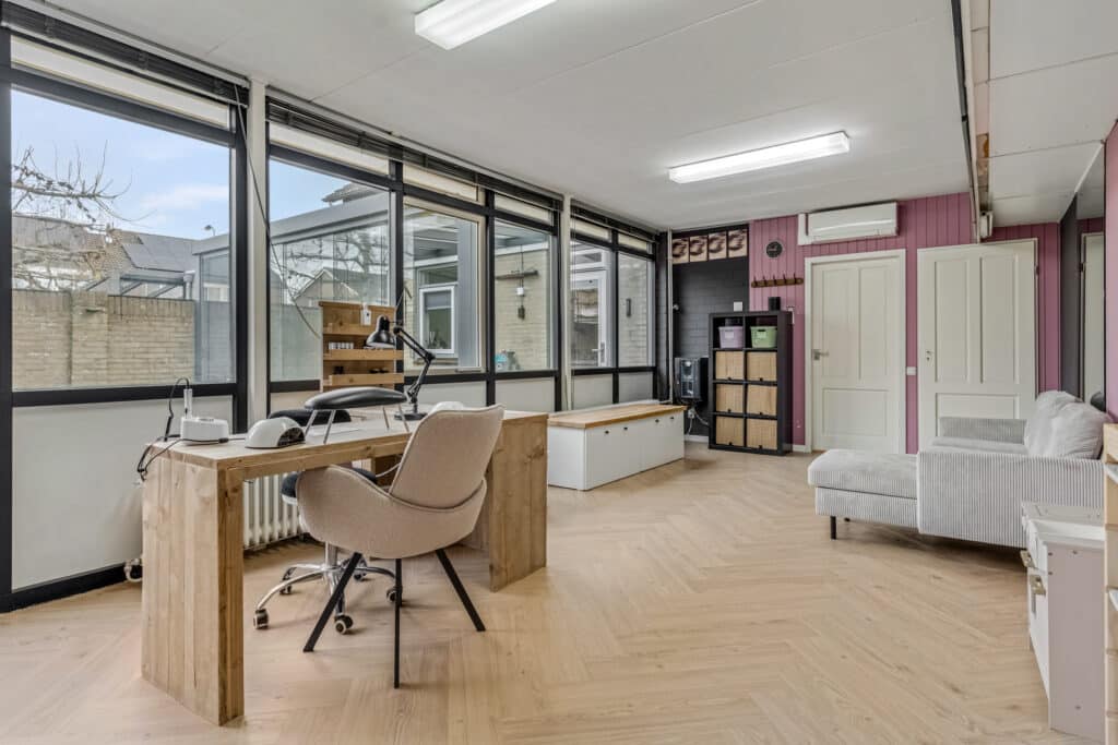 Een van de grote troeven van deze woning is de achtergelegen leefruimte die kan worden gebruikt als een volwaardig extra leefgedeelte. Deze ruimte ademt mogelijkheden. Of je nu droomt van een eigen praktijk aan huis, een rustige werkplek, een hobbyruimte, of juist een gezellige speelkamer voor de kinderen – hier kun je echt alle kanten op. Dankzij de airconditioning is het er het hele jaar door comfortabel, terwijl de aparte toegangsdeur naar buiten (via de bijkeuken) zorgt voor extra privacy en zelfstandigheid. Dit maakt de ruimte ook bijzonder geschikt voor werken aan huis of het ontvangen van klanten, zonder dat het woongedeelte wordt verstoord.