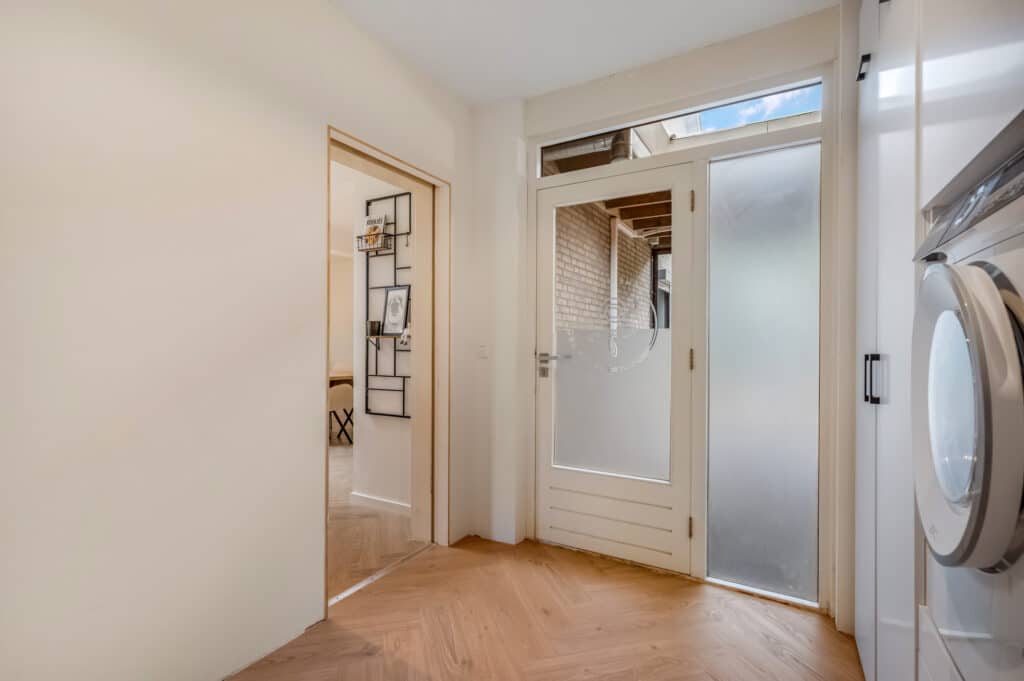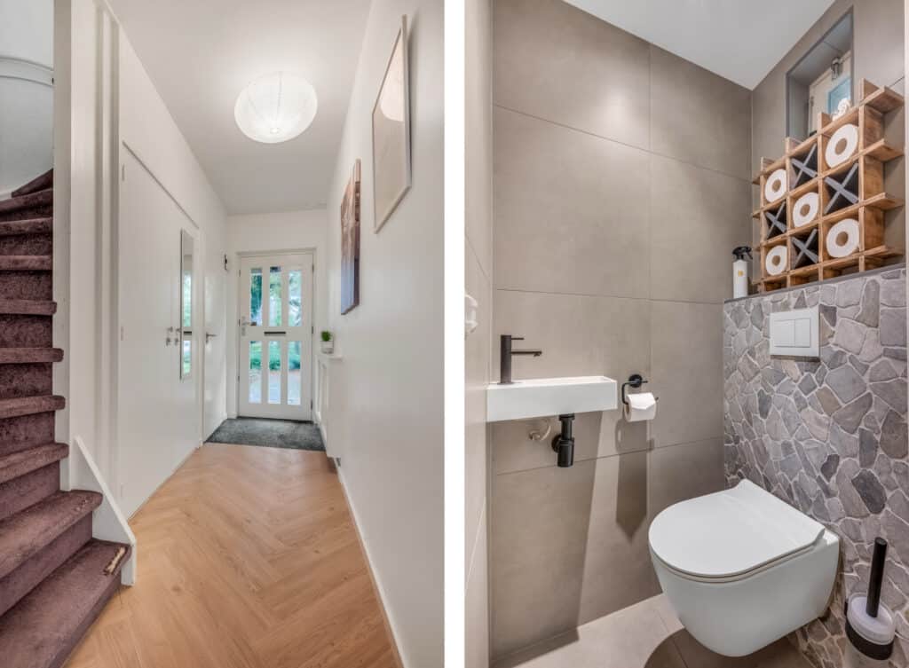 Achter de voordeur wacht een lichte en moderne hal met een prachtige PVC-vloer, hoog plintwerk en strak gestucte wanden. Hier begint de perfecte balans tussen eigentijds comfort en huiselijke warmte. De uitgebreide meterkast (vernieuwd in 2024) maakt meteen duidelijk dat dit huis technisch én esthetisch op topniveau is.