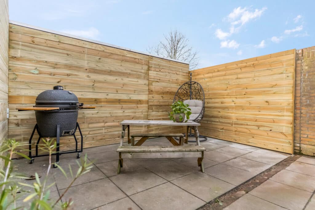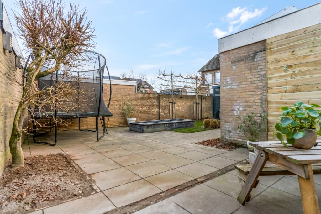 Zodra je via de serre de tuin instapt, ervaar je direct het gevoel van ruimte, rust en ontspanning. De achtertuin van Kennedysingel 55 Winssen is onderhoudsarm aangelegd en vormt een heerlijke verlenging van de leefruimte binnen. Dankzij de fijne indeling is er voor ieder wat wils: een deels bestrate terrashoek waar je gezellig kunt loungen, een groen gazon dat zorgt voor een natuurlijke, rustige uitstraling en ruimte biedt voor spelende kinderen of een moestuintje, en een decoratieve vijverpartij die zorgt voor een sfeervol en levendig accent. De tuin is volledig omsloten, wat zorgt voor maximale privacy en beschutting. Achterin bevindt zich bovendien een stenen berging, ideaal voor het opbergen van tuinspullen, fietsen of gereedschap. De ruime opzet van het perceel biedt daarnaast volop mogelijkheden om de tuin verder naar eigen wens in te richten – denk aan een sfeervolle overkapping, een buitenkeuken of zelfs een jacuzzi.
