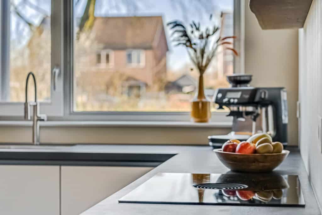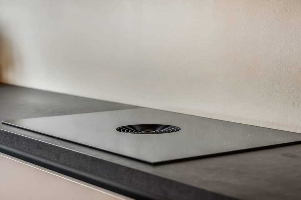 De keuken is een droom voor kookliefhebbers: greeploos, strak vormgegeven en uitgerust met luxe inbouwapparatuur zoals een BORA kookplaat met geïntegreerde afzuiging, combi oven, vaatwasser, inbouwkoelkast, inbouwvriezer (4 lades) en een extra grote spoelbak met keukenkraan met handdouche. Alles is aanwezig om hier op hoog niveau te koken en te genieten. Verder afgewerkt met een composiet werkblad en extra brede lades. En dan ook nog een heerlijk vrij zicht richting het water en de speeltuin.