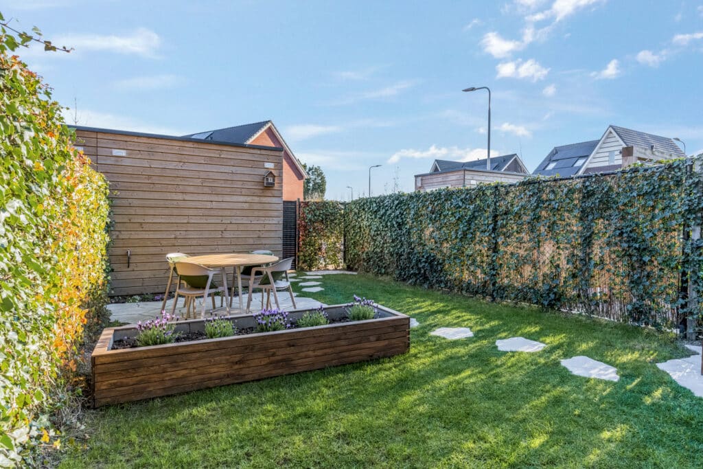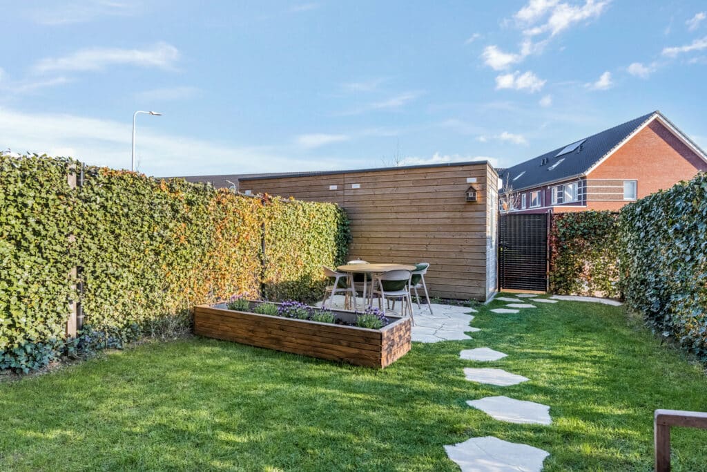 De achtertuin ligt perfect op het zuidoosten en is een heerlijke plek om te ontspannen. Met meerdere zonnige terrassen, een groene erfafscheiding en optimale privacy het hier genieten van het buitenleven. Voor de nodige opslag is er een vrijstaande houten berging (ca. 2×3 m) met verlichting, voorzien van water, UTP kabel en 5aderige elektrakabel richting de meterkast.