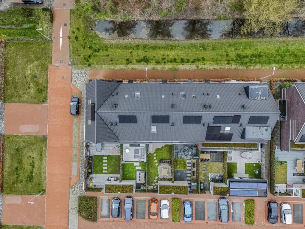 De jonge wijk waarin deze woning ligt, is met veel aandacht ontworpen. Natuurinclusief, ruim opgezet en kindvriendelijk, met groene daken, nestkasten en slimme waterafvoer via wadi’s. Aan de voorzijde geniet je van vrij uitzicht op een groene speelomgeving, terwijl je aan de achterzijde alle ruimte hebt om te parkeren.