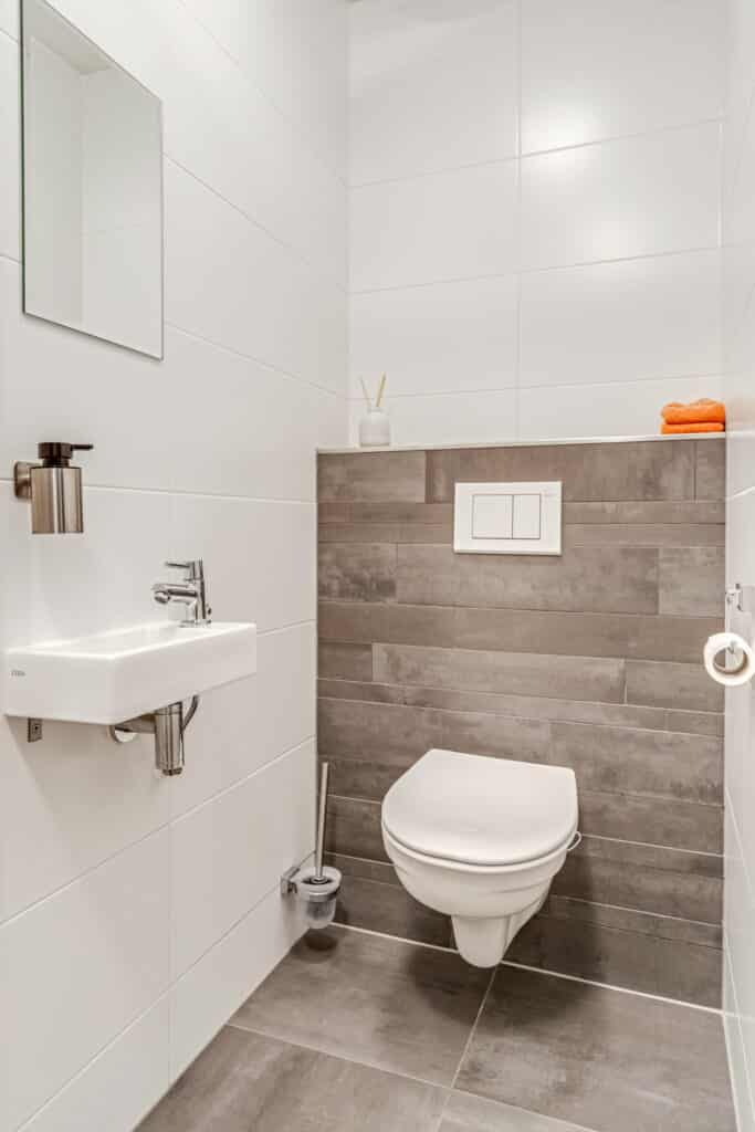 De indeling is praktisch en comfortabel: een apart toilet met fontein (in dezelfde afwerking als de badkamer), een technische ruimte met cv-ketel (Intergas, slechts 4 jaar oud), mechanische ventilatie en een ruime bijkeuken met plek voor de wasmachine en droger.