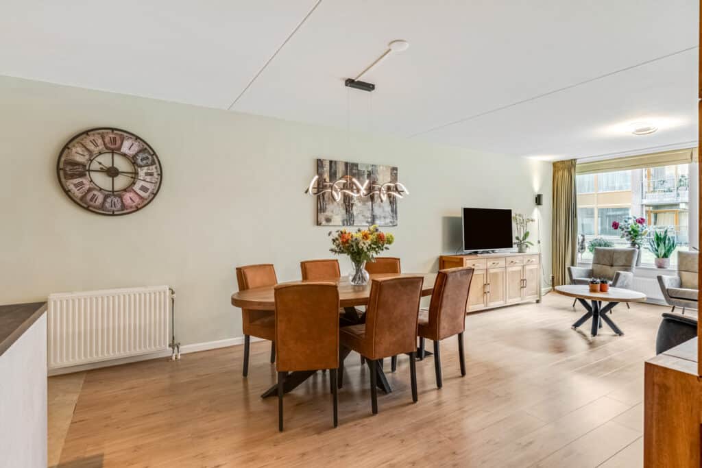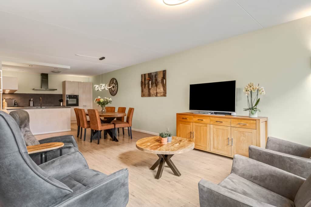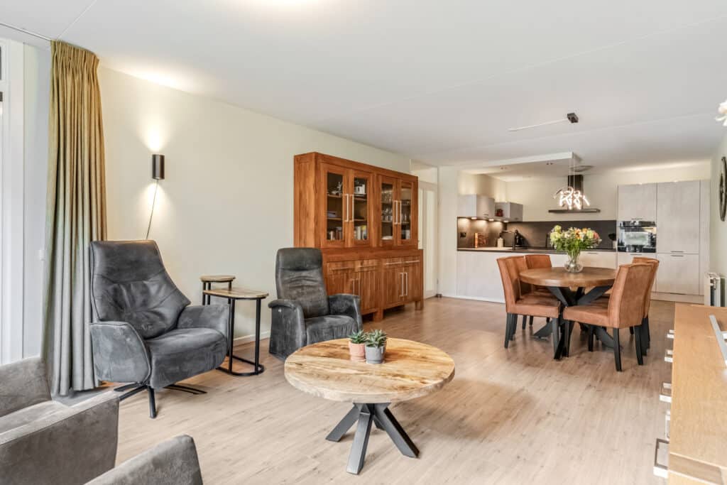 Het woongedeelte is een heerlijke plek om te ontspannen en te genieten van het dagelijks leven. De ruimte is langgerekt, waardoor er gemakkelijk een zit- en eethoek te creëren zijn. Grote ramen zorgen voor veel lichtinval en bieden een prettig zicht naar buiten.