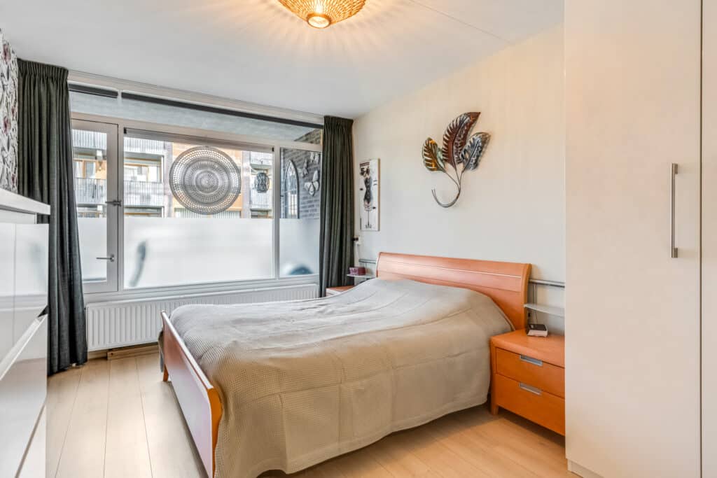 Dit appartement beschikt over twee verrassend ruime slaapkamers. De hoofdslaapkamer is royaal en en heeft de mogelijkheid voor een handige kastenwand. Dankzij het lichte laminaat en de grote raampartijen valt hier veel daglicht binnen, wat de ruimte nog groter laat lijken. De tweede slaapkamer is eveneens licht en ruim en daarmee perfect geschikt als logeerkamer, werkkamer of juist een tweede volwaardige slaapkamer.