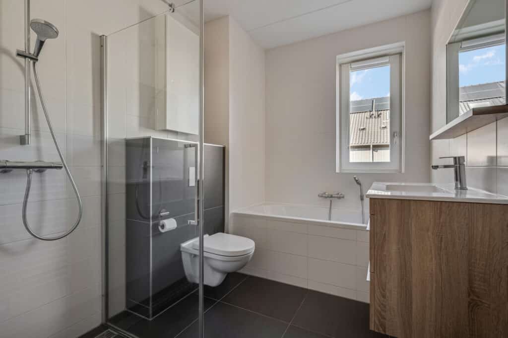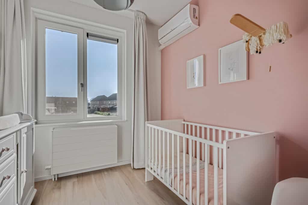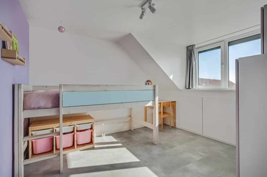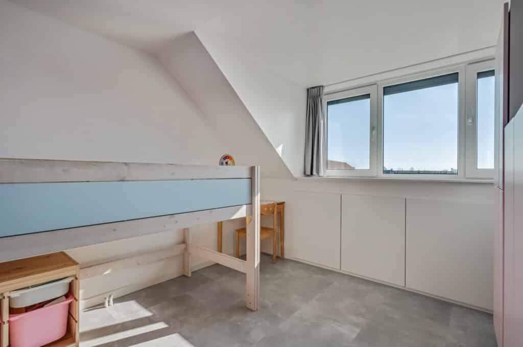 De woning beschikt over vijf ruime slaapkamers. Op de eerste verdieping vind je drie slaapkamers, waarvan één is uitgerust met airco voor ultiem comfort in de zomer. De moderne badkamer aan de voorzijde biedt een ligbad, brede inloopdouche met scherm, breed wasmeubel in houtlook, designradiator en groot raam voor natuurlijke lichtinval.
