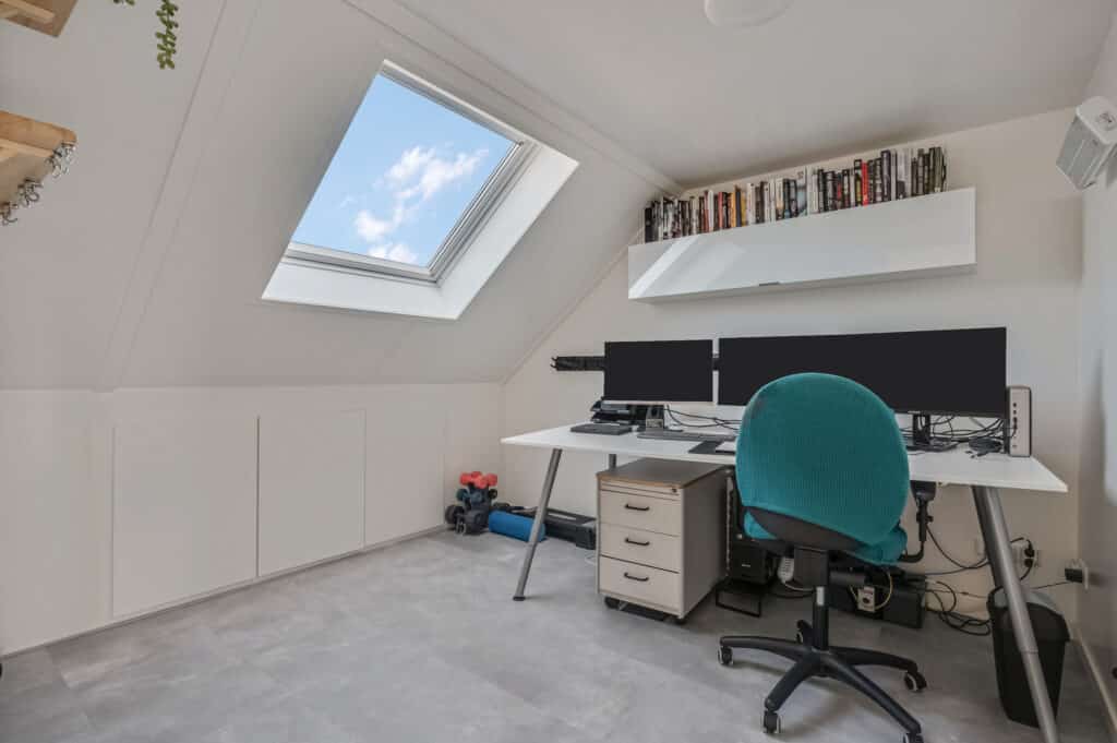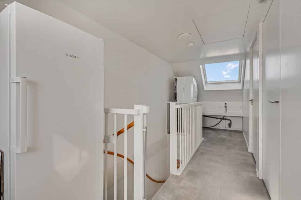Op de bovenste verdieping zijn twee extra slaapkamers gerealiseerd, voorzien van een grote dakkapel met kunststof kozijnen aan de achterzijde en een voorzolder met wasruimte. De vlizotrap naar de ruime bergzolder biedt extra opbergruimte, ideaal voor spullen die je niet dagelijks nodig hebt.
