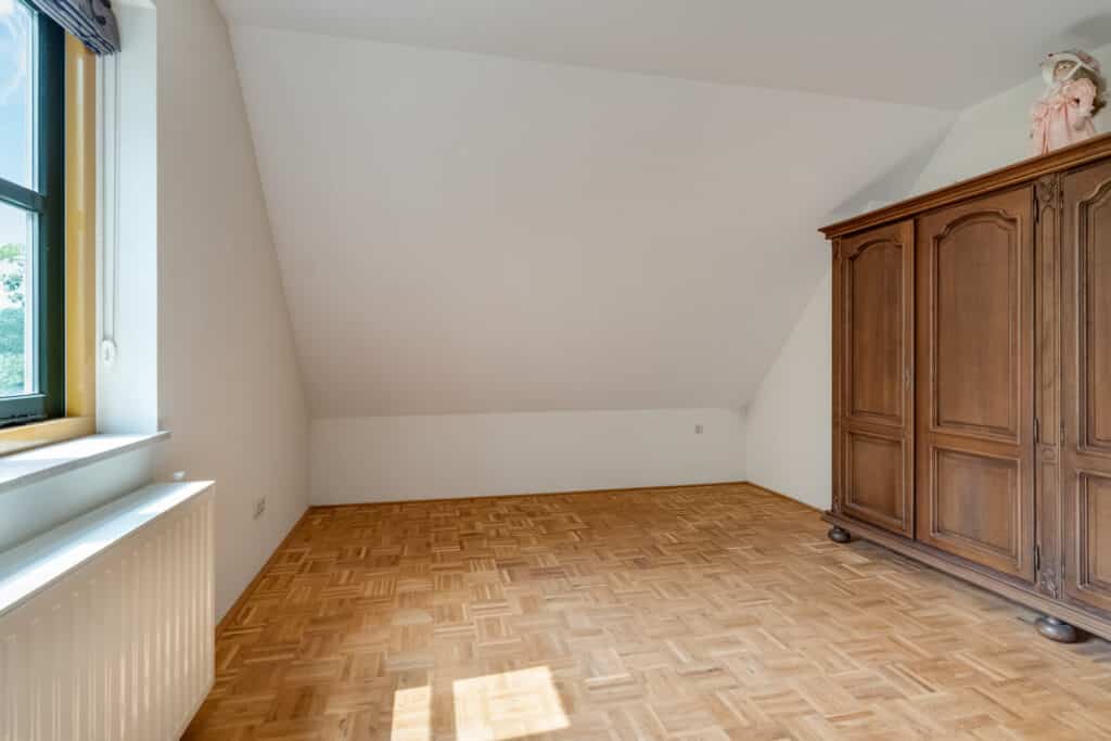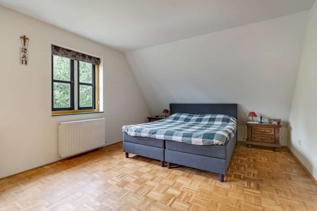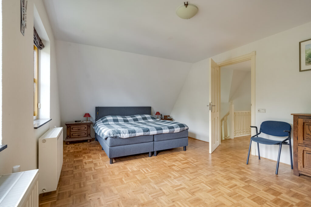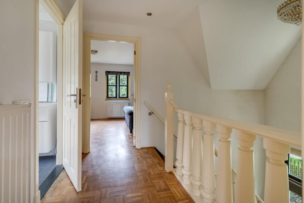 Bij aankomst op de eerste verdieping wordt u direct verrast door de prachtige vide, die zorgt voor een ruimtelijk gevoel. De overloop biedt toegang tot twee zeer ruime slaapkamers, elk met voldoende ruimte voor een groot bed en kasten. Daarnaast bevindt zich hier een vlizotrap naar de ruime vliering, ideaal voor extra opslag.