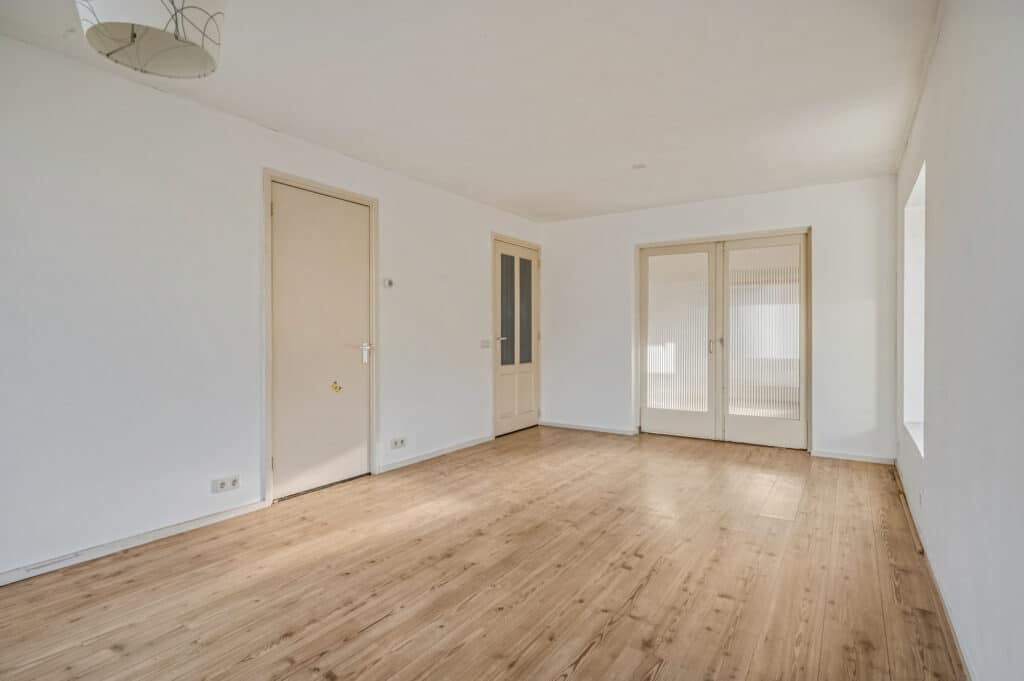 De eetkamer staat via stijlvolle openslaande deuren in verbinding met de zitkamer. Deze ruimte voelt warm en uitnodigend aan door de strakke afwerking met gestucte wanden, glad gespoten plafonds en een laminaatvloer. De grote ramen zorgen ook hier voor een prettige lichtinval en de indeling biedt volop ruimte voor een comfortabele zithoek. Overal in huis is nagedacht over gebruiksgemak, met voldoende stopcontacten en een logische routing tussen de ruimtes.