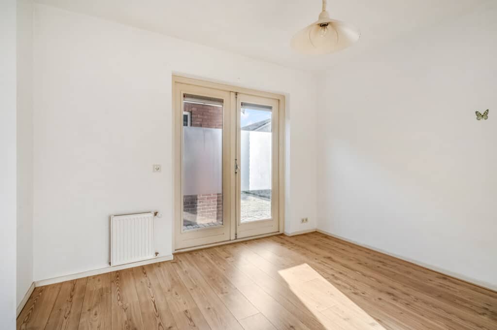 Dit is zonder twijfel één van de meest aantrekkelijke plekken in huis. Dankzij de royale afmetingen en de grote raampartijen baadt deze ruimte in het licht en leent zij zich perfect voor een ruime eetkamer waar lange diners en gezellige momenten centraal staan. Wie nog groter wil denken, kan hier zelfs kiezen voor het creëren van een indrukwekkende woonkeuken door de bestaande muurtjes te verwijderen. Vanuit de eetkamer openen openslaande deuren zich naar de tuin, waardoor binnen en buiten moeiteloos in elkaar overlopen.