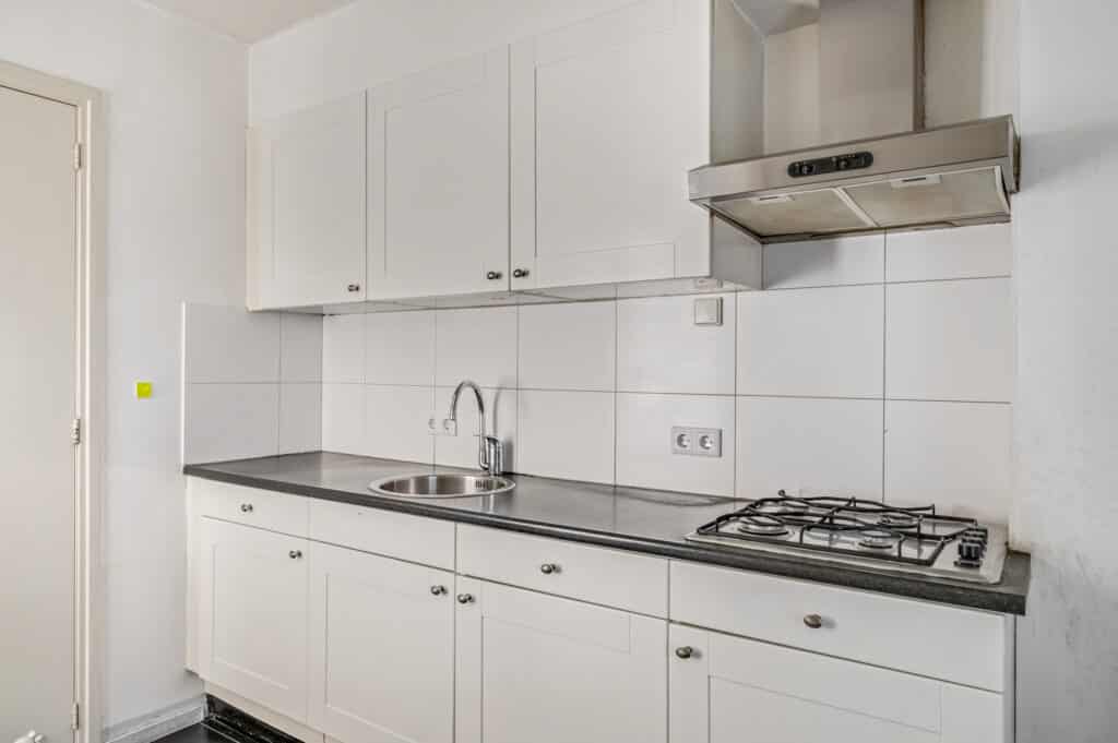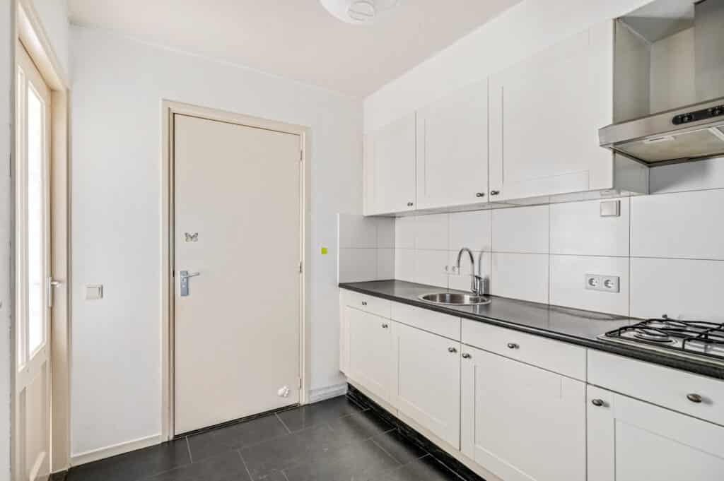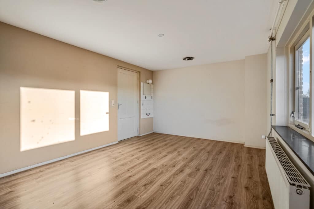 Fijn is de mogelijkheid om de woning ook via de ruime achterom te betreden. Je komt binnen in een royale bijkeuken, ideaal voor jassen, schoenen en extra bergruimte. Vanuit hier is er een doorloop naar de dichte keuken. De woning beschikt over een ATAG cv-ketel die hier is gesitueerd.