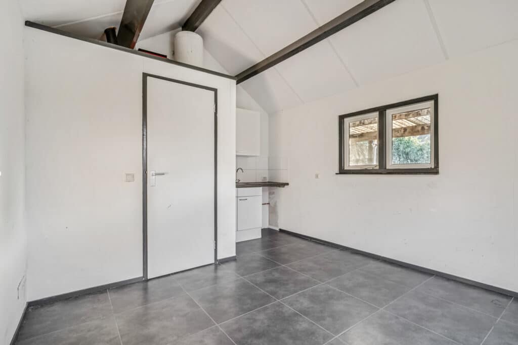 Een absoluut hoogtepunt van deze woning is het grote bijgebouw in de achtertuin. Dit gebouw is volledig geïsoleerd en met veel zorg en comfort ingericht. Het beschikt over vloerverwarming op warm water, een eigen boiler, zes zonnepanelen en een moderne afwerking met antraciet tegelwerk en strak gestucte wanden. Er is een toilet aanwezig en zelfs de mogelijkheid om hier een douche te realiseren. Dit maakt het bijgebouw uitermate geschikt voor uiteenlopende doeleinden, zoals een kantoor, praktijk aan huis of hobbyruimte.