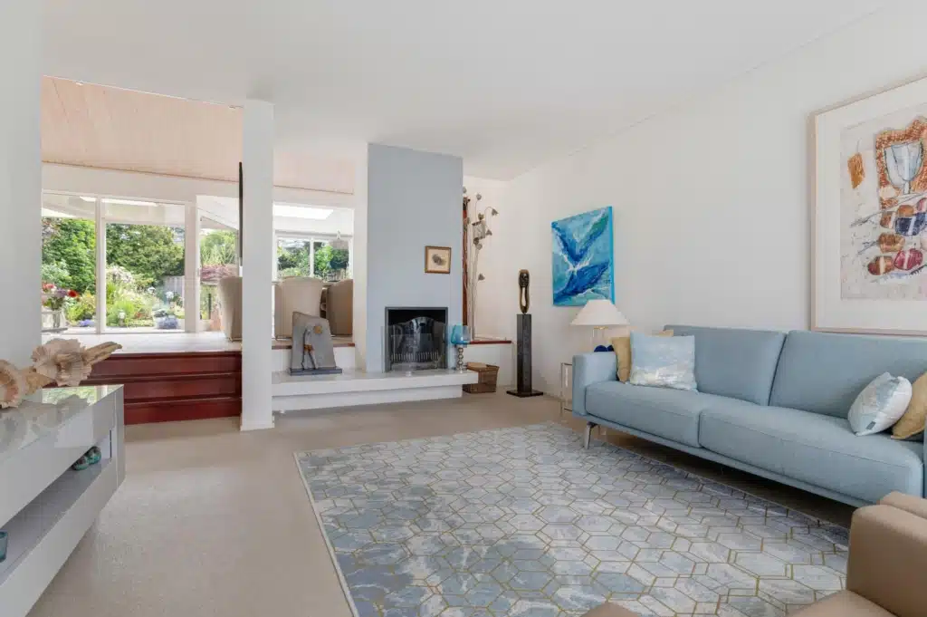 De woonkamer is een ware eyecatcher. Met een drempelloze overgang vanuit de hal, biedt deze ruimte een speelse indeling en een riante zithoek met een mooie open haard en schouw. Een trap met twee treden (split level) leidt je naar de achterzijde naar het eetgedeelte en de keuken, die zijn voorzien van grote glazen puien en een schuifpui naar het overdekte terras. De prachtig hoge plafonds (vide) en de lichtkoepel in de tuinkamer zorgen voor een lichte en ruimtelijke sfeer. De L-vormige keuken is uitgerust met hoogglans witte kasten, greeploze afwerking, moderne apparatuur en een stijlvolle aluminium achterplaat.